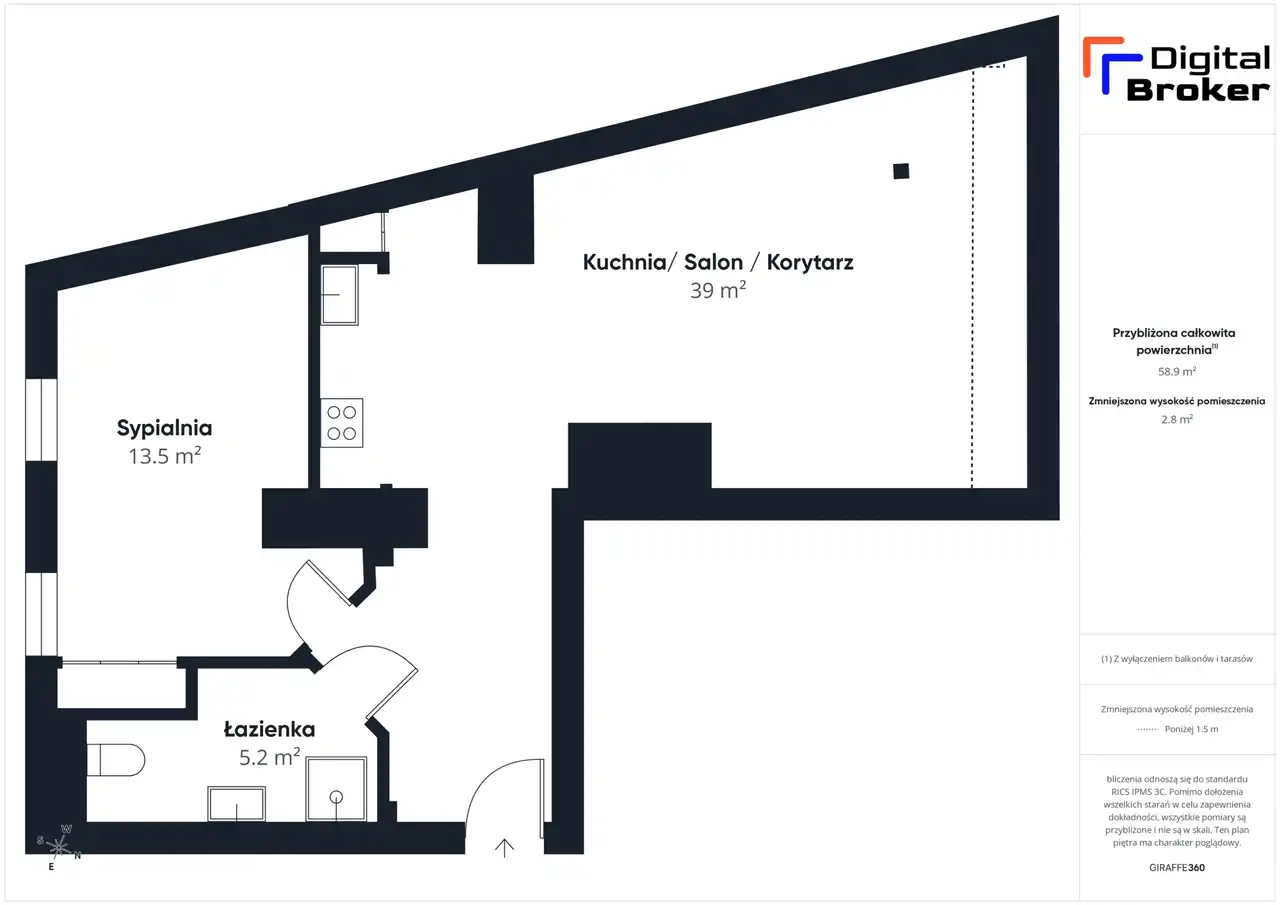 - Charakterystyka mieszkania 59.41 m2, 2 pokoje