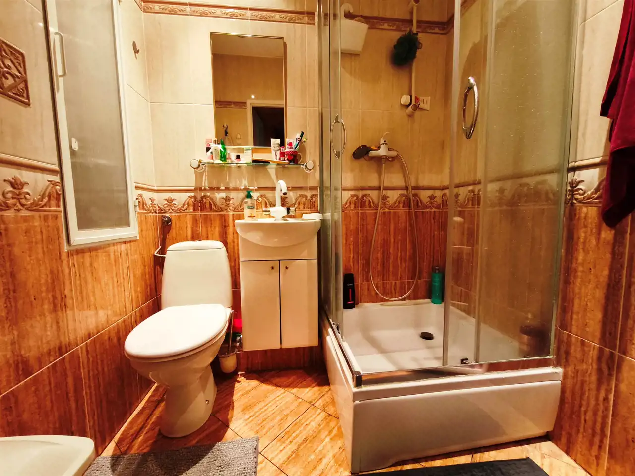 Trzy pokoje z niezależna jasną kuchnią, łazienka z wc, korytarz, okna wychodzące głównie na wschód, zachód i południe; piękny widok na panoramę miasta.