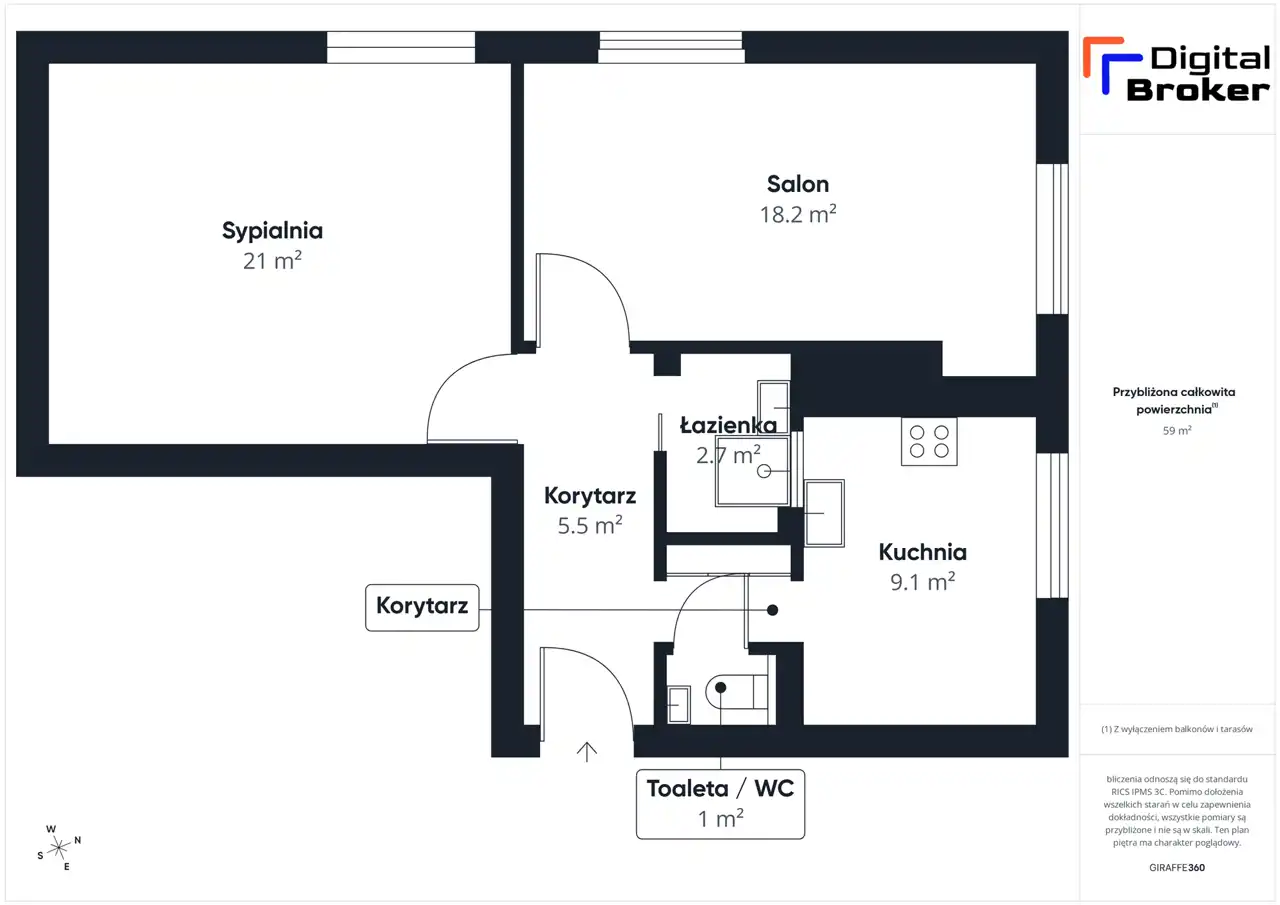 - Charakterystyka mieszkania 58 m2, 2 pokoje