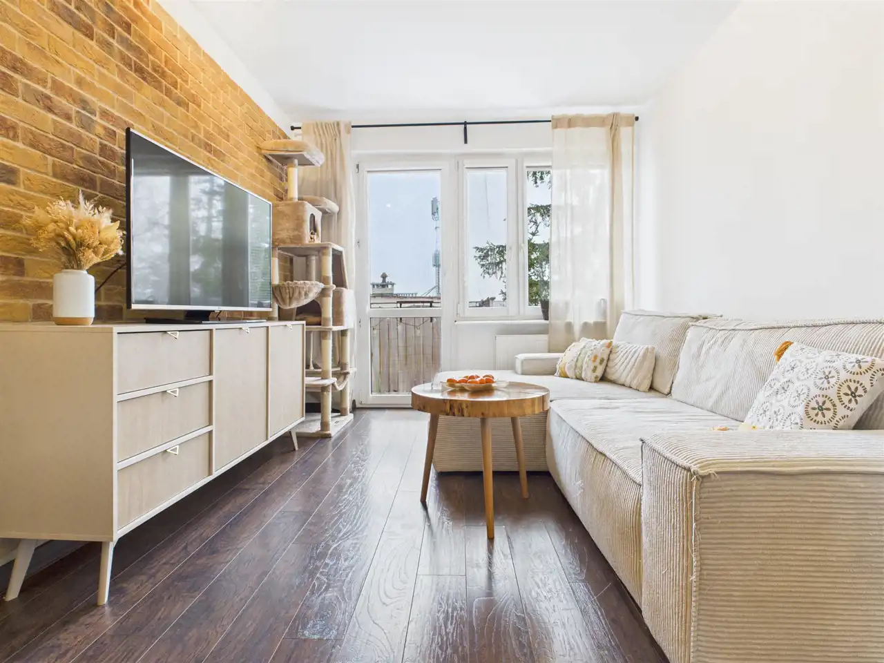 Położenie na trzecim piętrze oraz dwustronna ekspozycja sprawiają, że wnętrza są jasne, przewiewne i zapewniają poczucie prywatności. Z okien oraz balkonu rozciąga się przyjemny widok na drzewa.