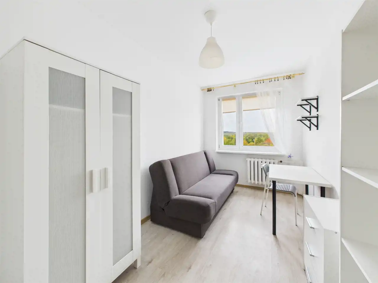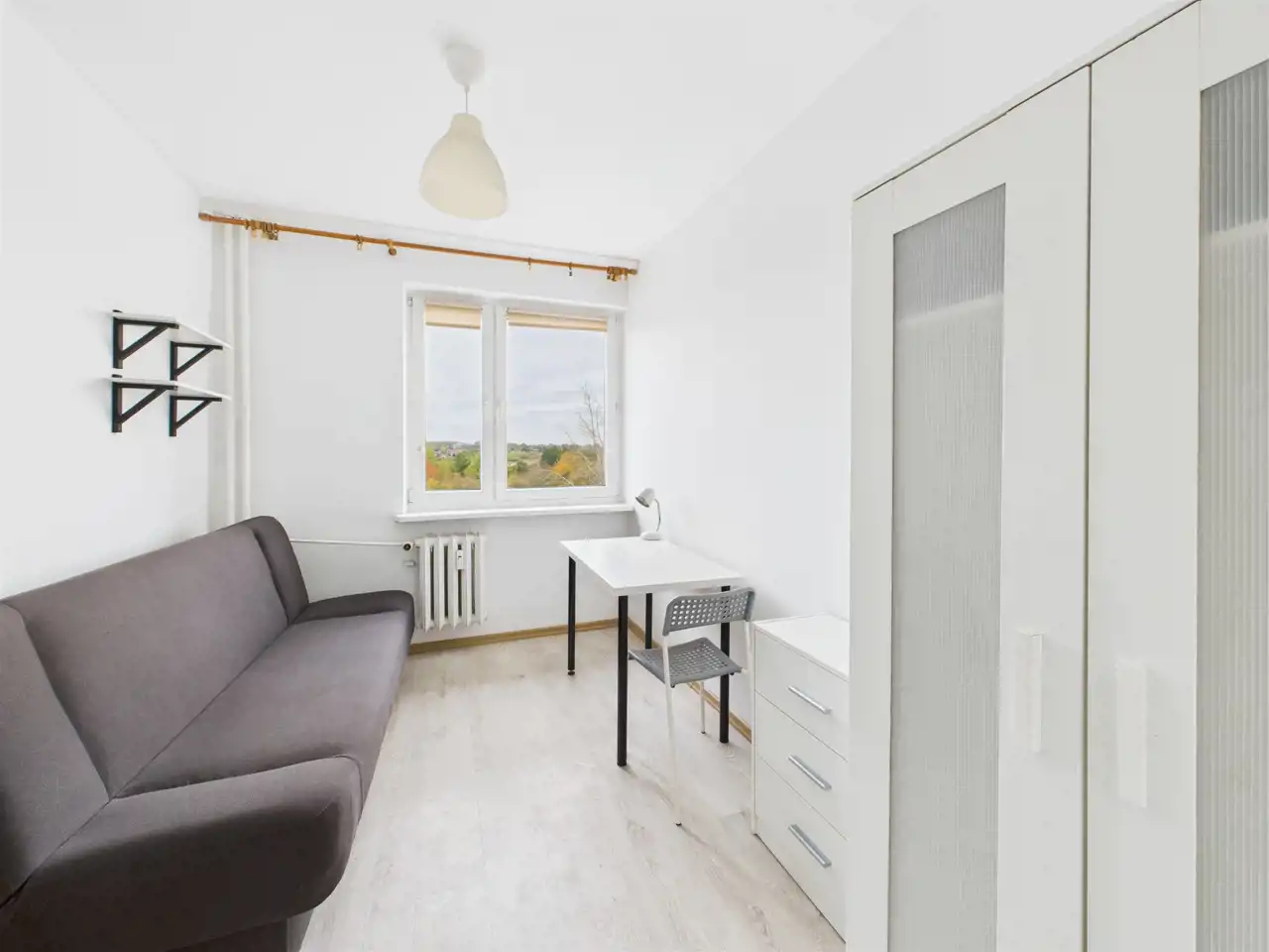 Mieszkanie pierwotnie składało się z 3 pokoi, jednak zostało przearanżowane na 4 niezależne pokoje z myślą o wynajmie.