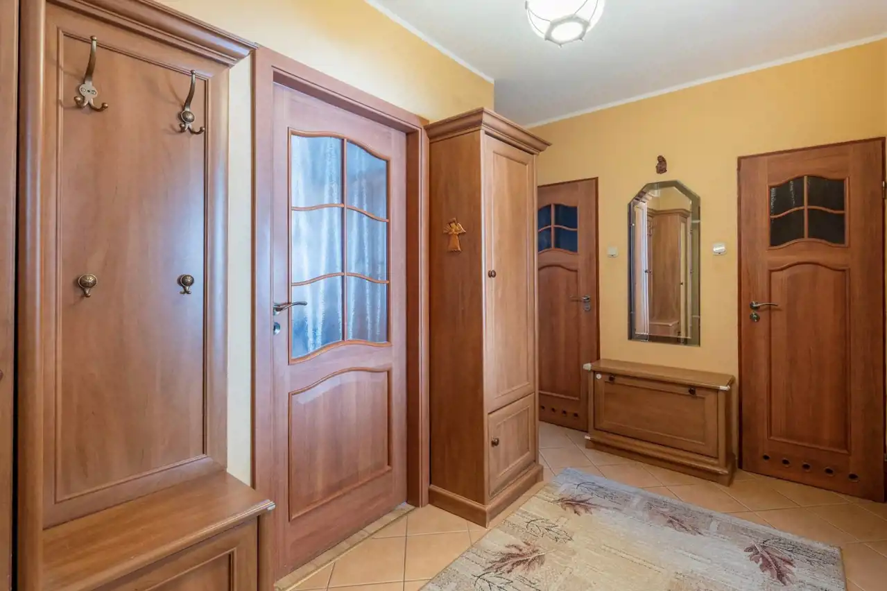 - przedpokój – szafa, wieszak na ubrania, domofon,