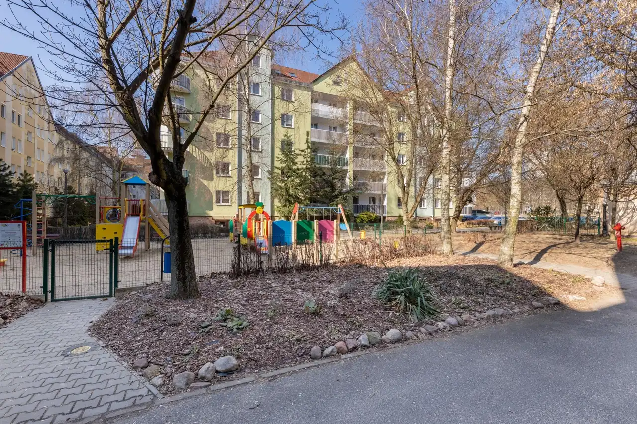 Blok znajduje się w ładnej okolicy, gdzie cieszy oczy osiedlowa zieleń a w sąsiedztwie rodzinom ułatwia życie przyjazna infrastruktura dla dzieci tj. place zabaw i boiska.