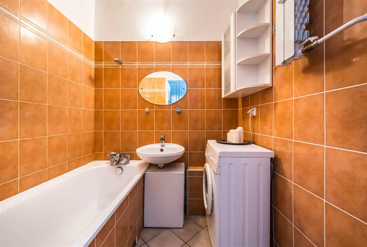 - Łazienka 2,70 m2 z pralką oraz wanną.