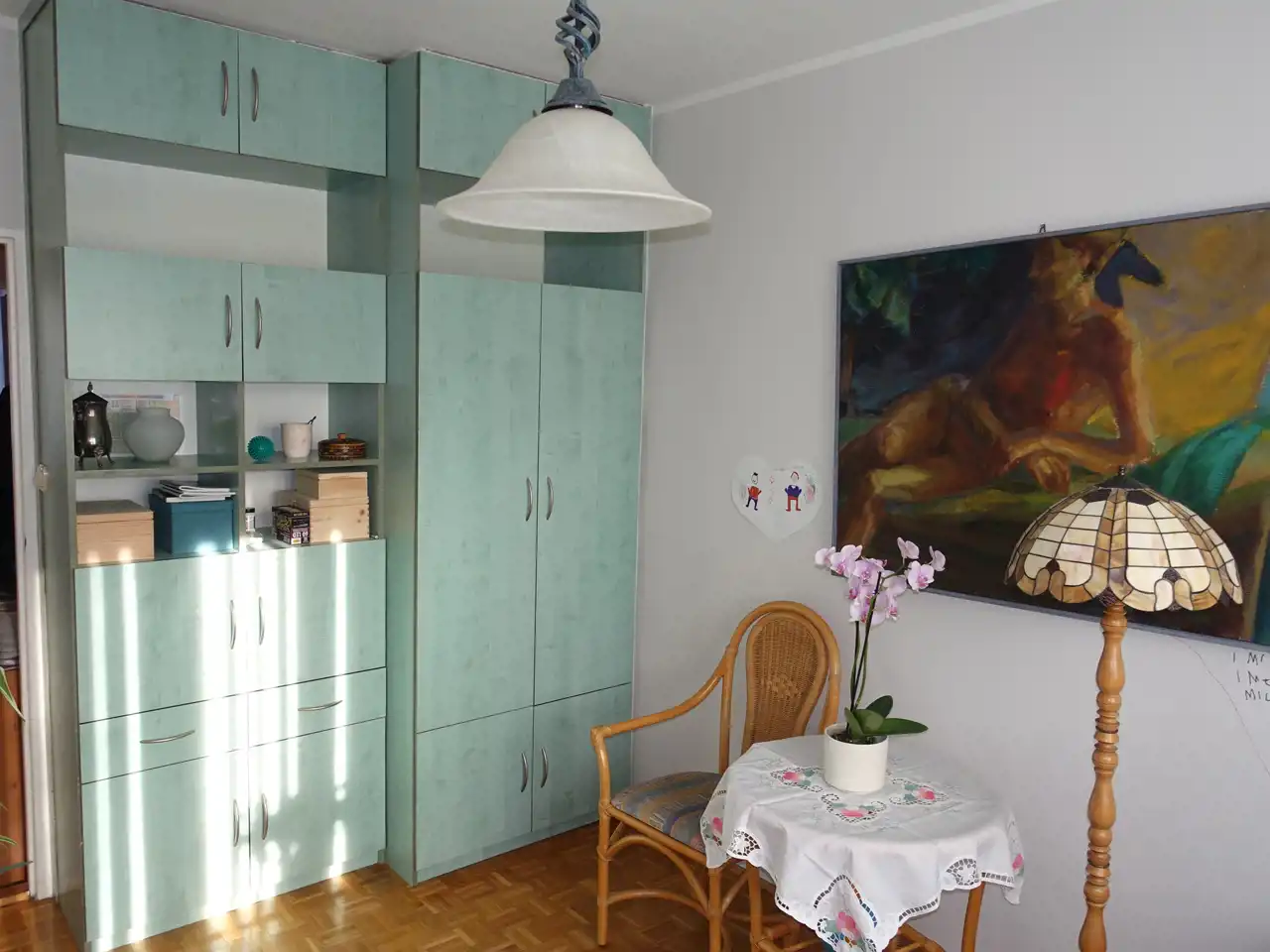 - trzy pokoje o wymiarach ok. 12 m2, 8 m2, 8 m2,
