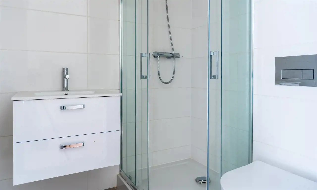 Łazienki: armatura, kabina prysznicowa, wc, umywalka, oświetlenie.