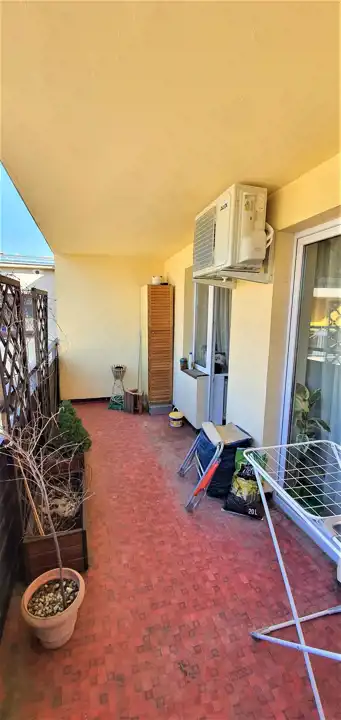 Na dolnym poziomie wyjście na balkon typu loggia, na drugim poziomie spory taras ukierunkowany na podwórze osiedla.