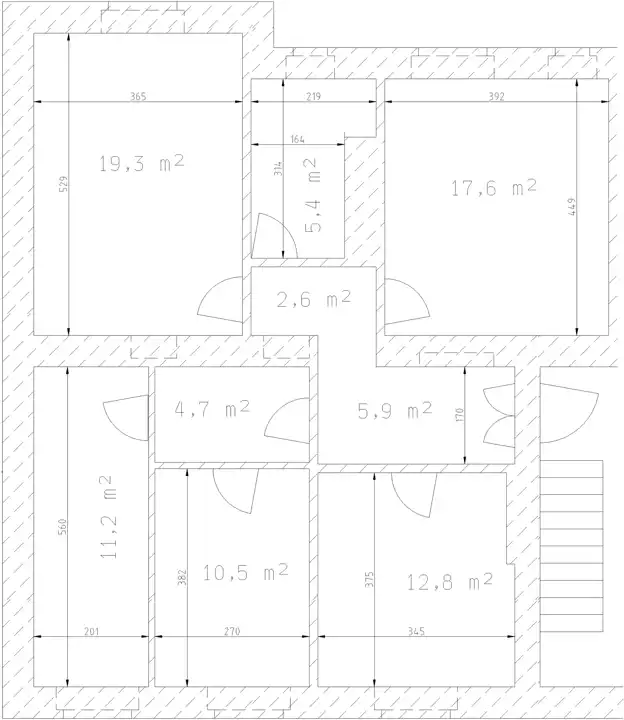 Dwa mniejsze pokoje oraz część korytarza zostały wydzielone z jednego dużego pokoju (ok. 27 m²). Istnieje możliwość przywrócenia pierwotnego, bardziej otwartego układu poprzez usunięcie ściany działowej.