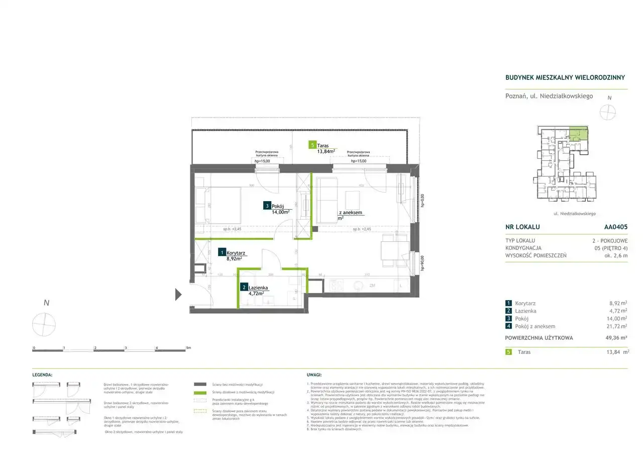 - Charakterystyka mieszkania 49.36 m2, 2 pokoje