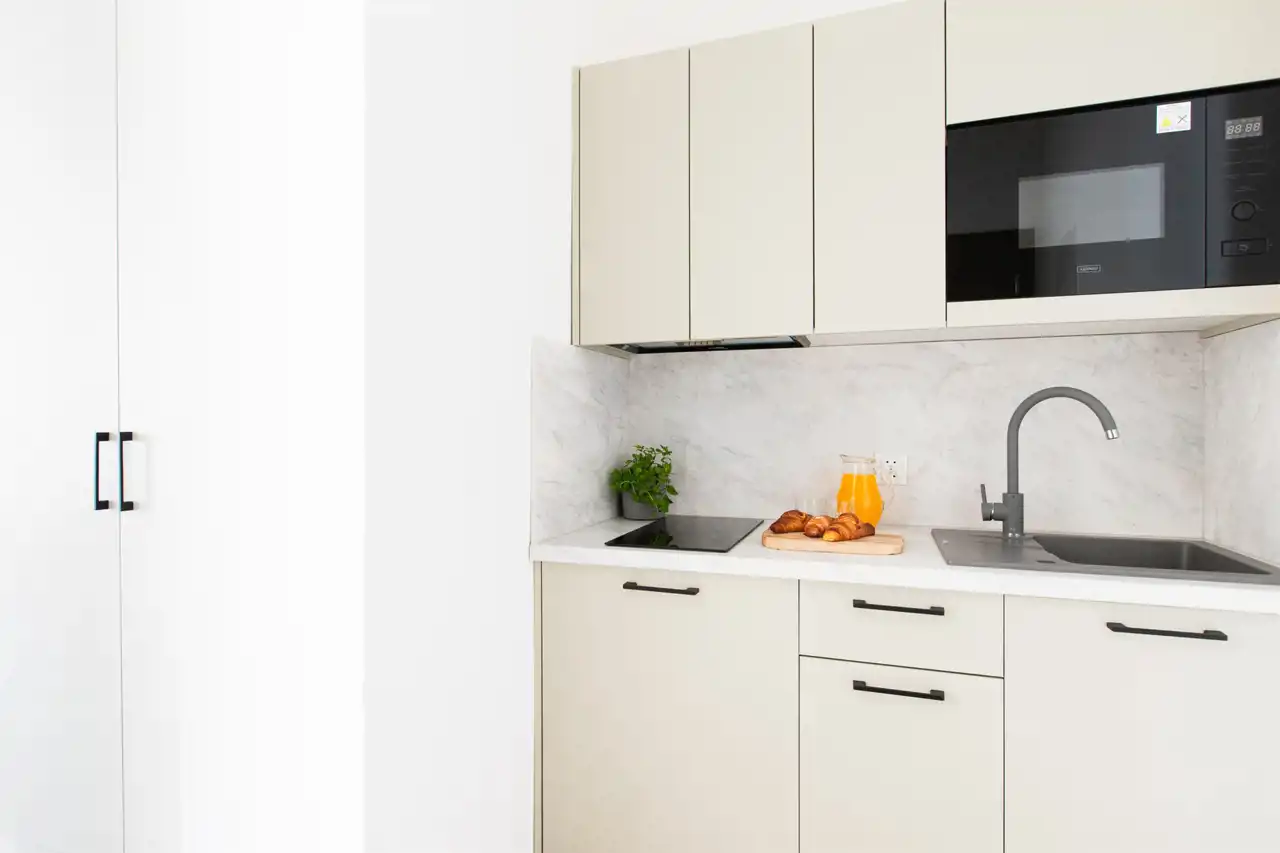 Aneksy kuchenne w zabudowie robionej na wymiar z nowymi sprzętami AGD.