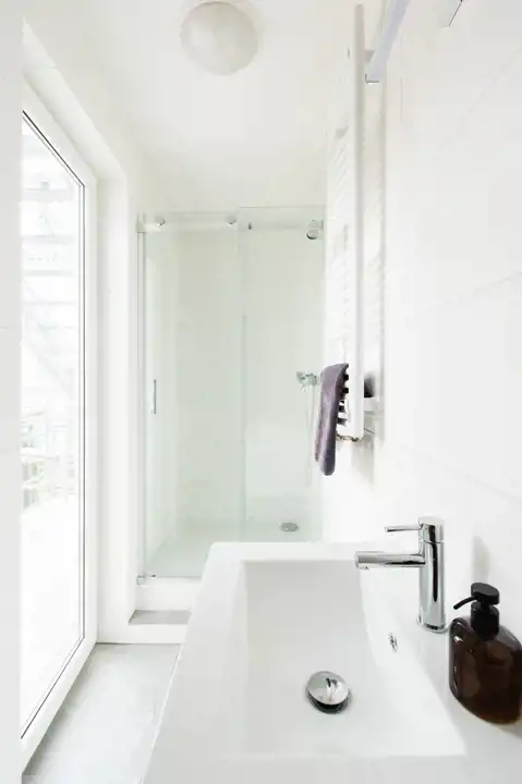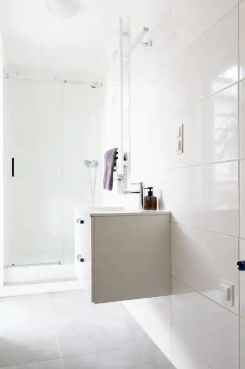 Łazienki: armatura, kabina prysznicowa, wc, umywalka, oświetlenie.