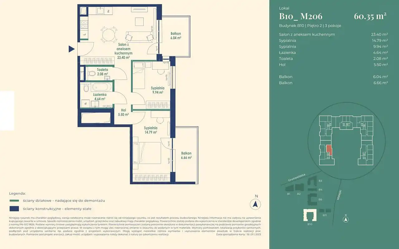 - Charakterystyka mieszkania 60.35 m2, 3 pokoje