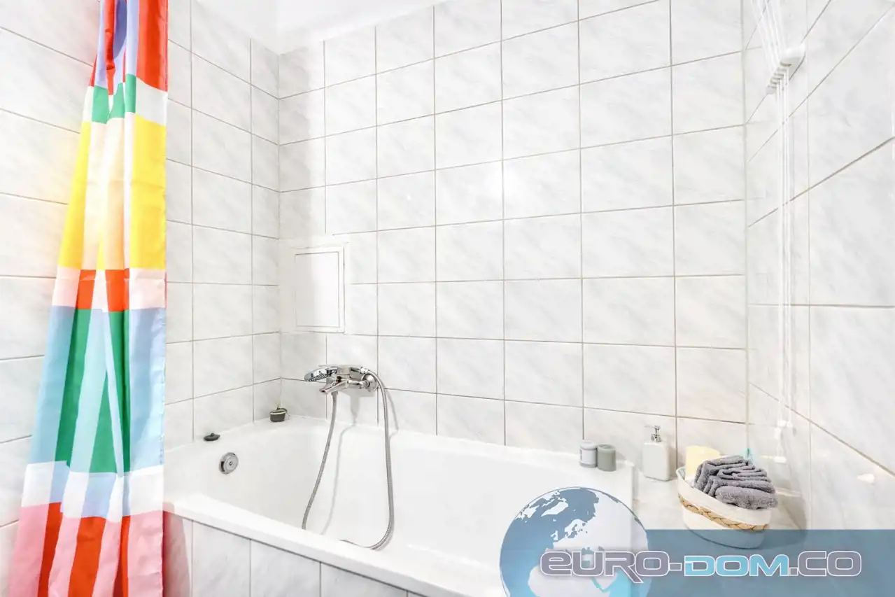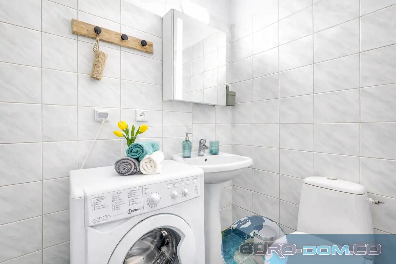 - łazienki z wanną, umywalką oraz pralką, co pozwala na pełen komfort użytkowania.