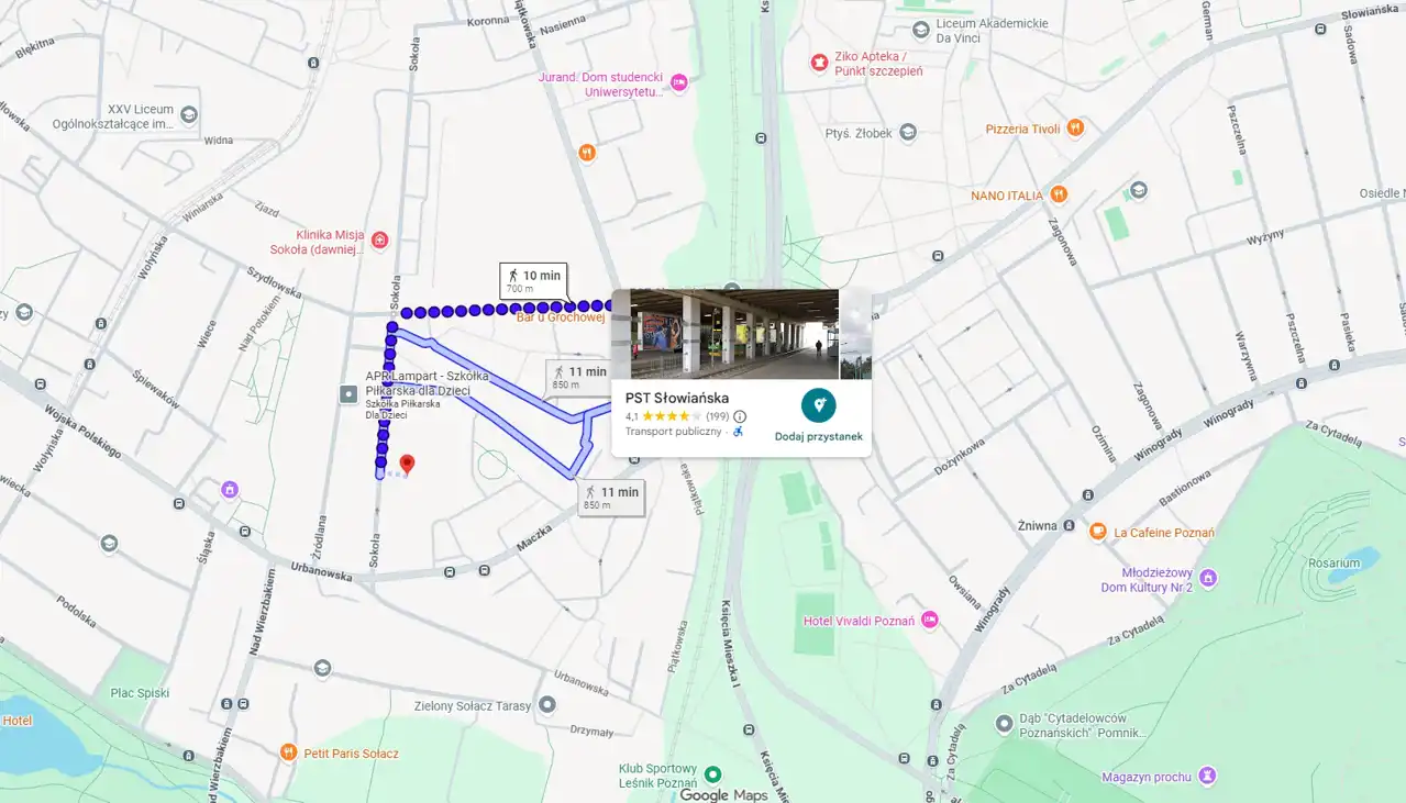 Dodatkowo, w bliskiej odległości około 260 metrów znajdują się przystanki autobusowe Maczka (linie 182, 191) oraz tramwajowe Nad Wierzbakiem (linie 9, 11) i Słowiańska (linie 12,14,15,16) co umożliwia szybki i wygodny dostęp do różnych części miasta.
