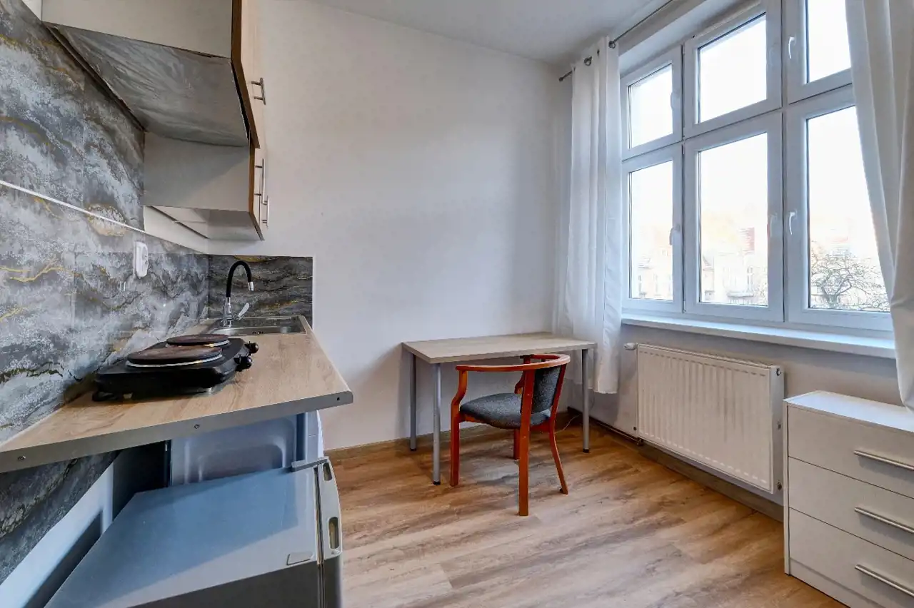 Do wynajęcia mieszkanie jednopokojowe, położone na III piętrze kamienicy przy ul. Słowackiego w Poznaniu. Niedaleko ronda Kaponiera i Mostu Teatralnego. Ładny widok z okna.