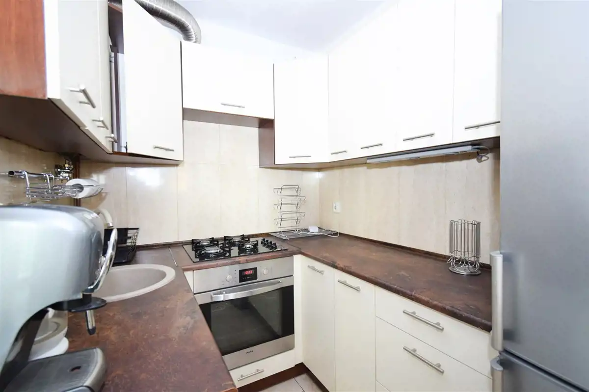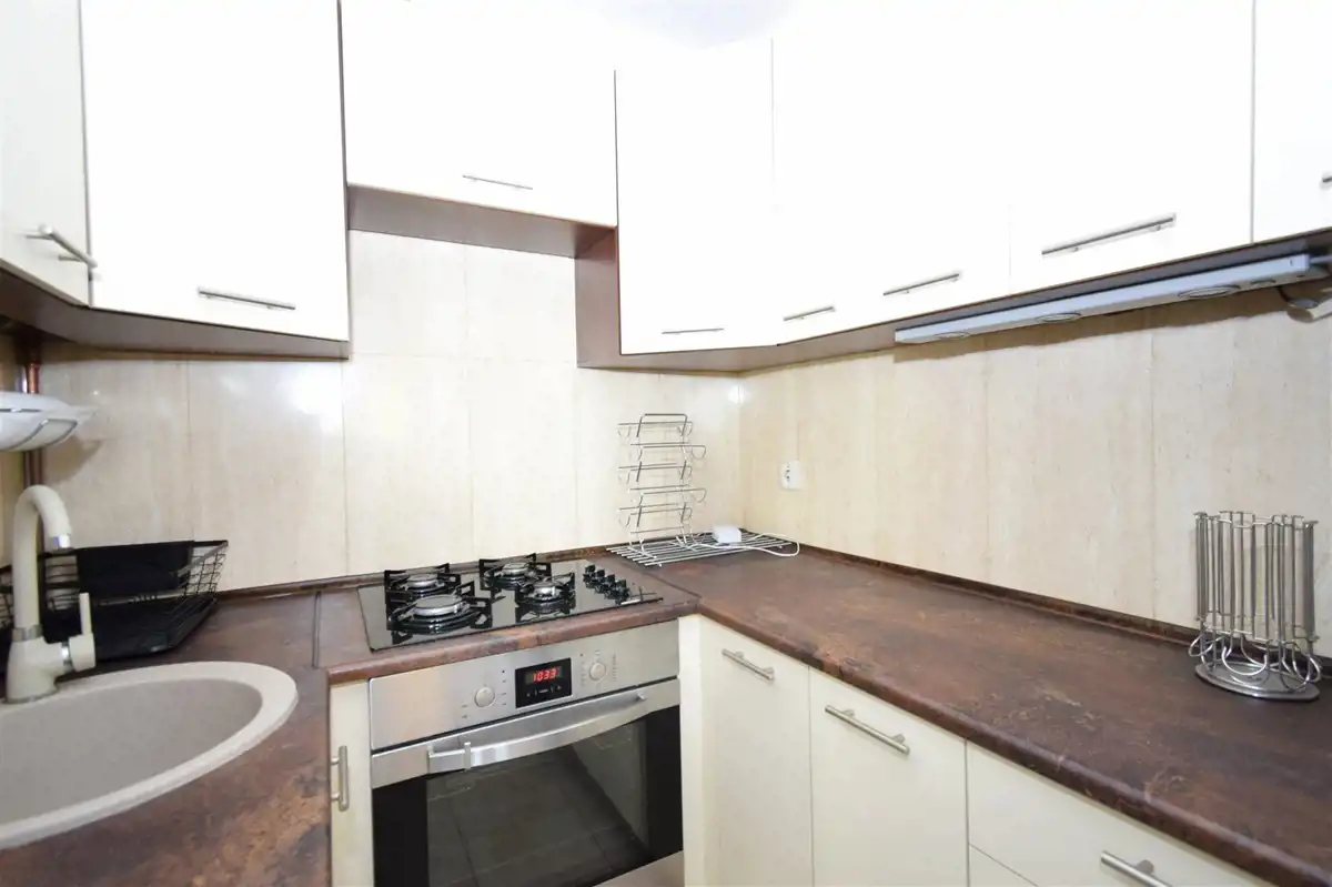 Kuchnia w zabudowie kuchennej wraz ze sprzętem AGD, tj, zmywarka 45', płyta gazowa, piekarnik, lodówko-zamrażarka.