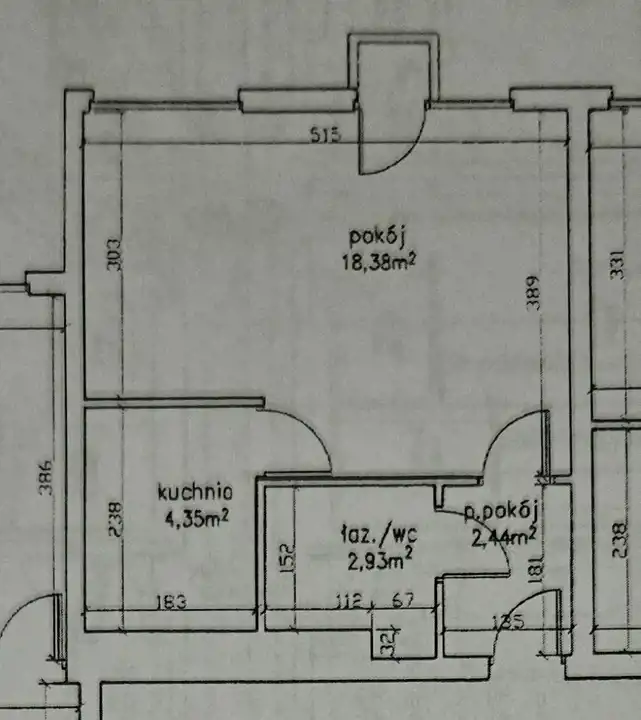 Składa się z przedpokoju, łazienki i pokoju połączonego z aneksem kuchennym. Z pokoju jest wyjście na balkon.