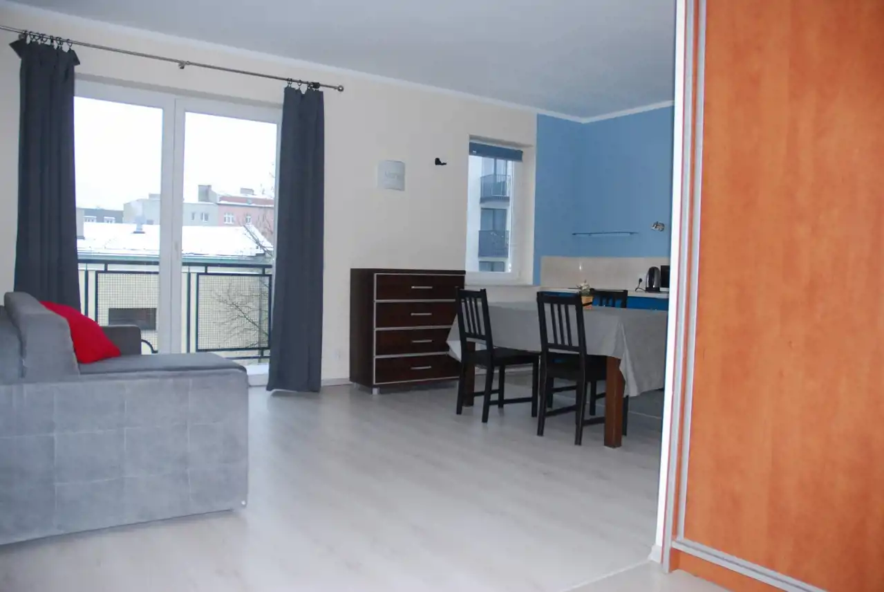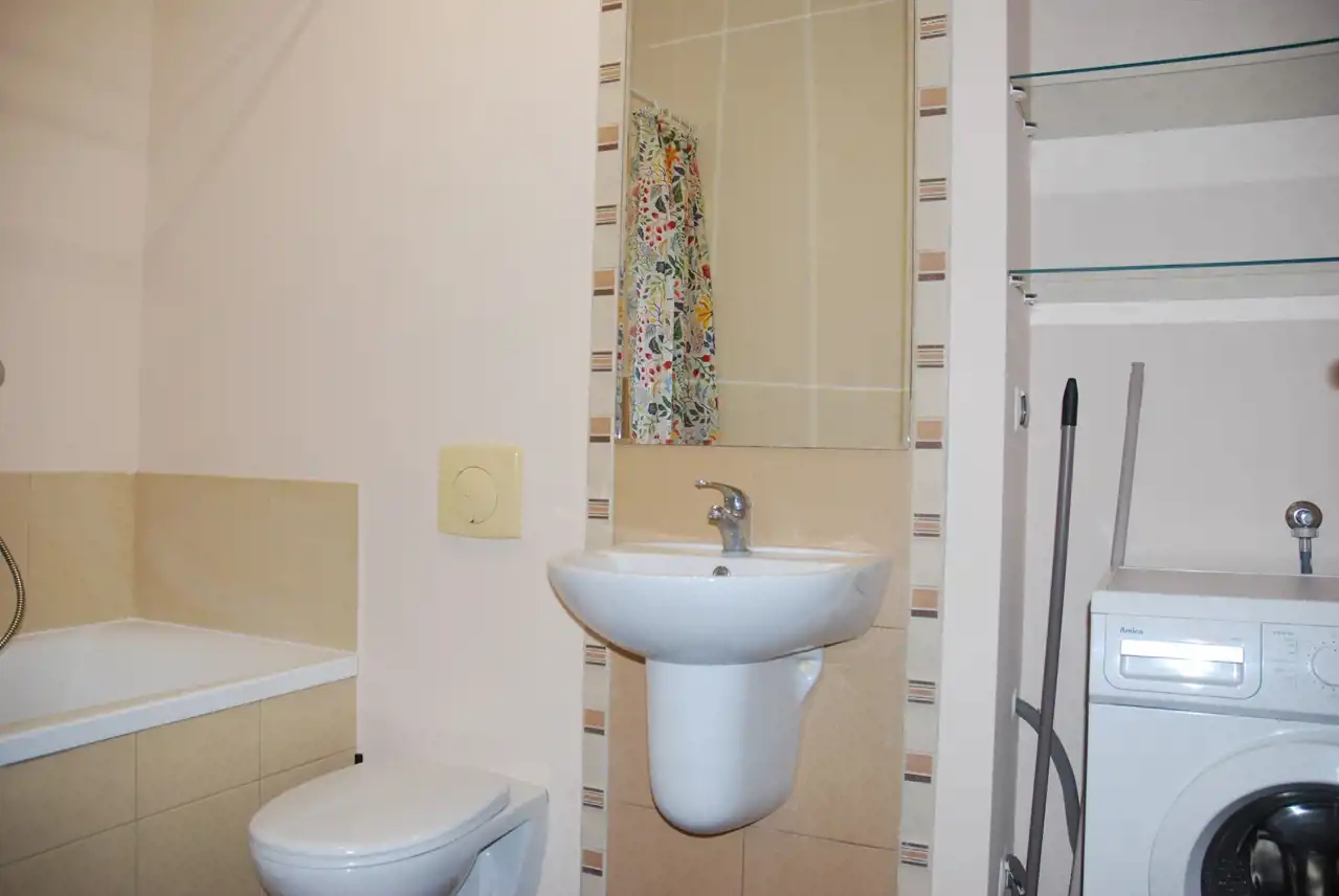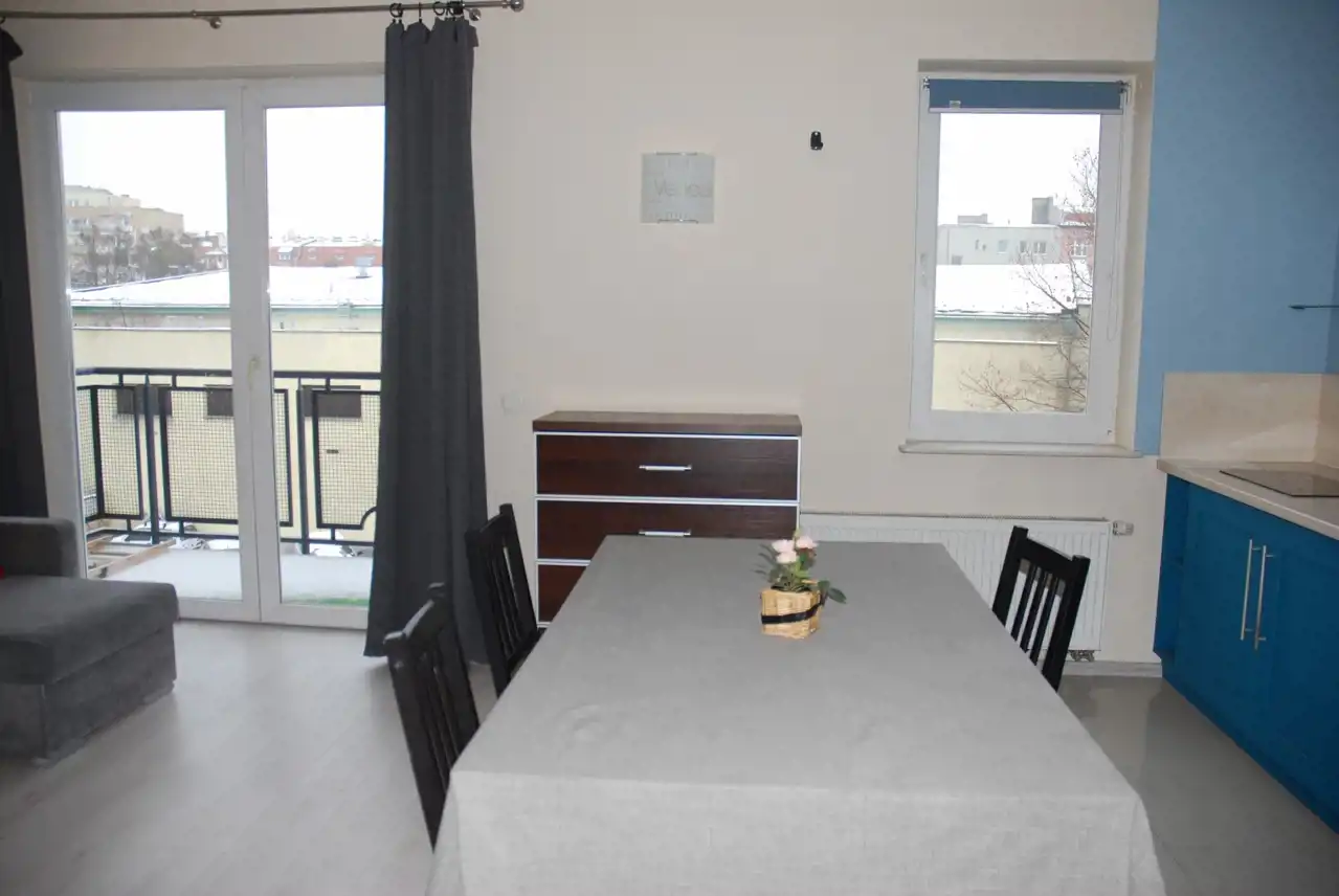 Do wygodnego zamieszkania przez 1 lub 2 najemców, z umeblowanym aneksem kuchennym i pokojem oraz z wygodną, dużą łazienką z wanną.