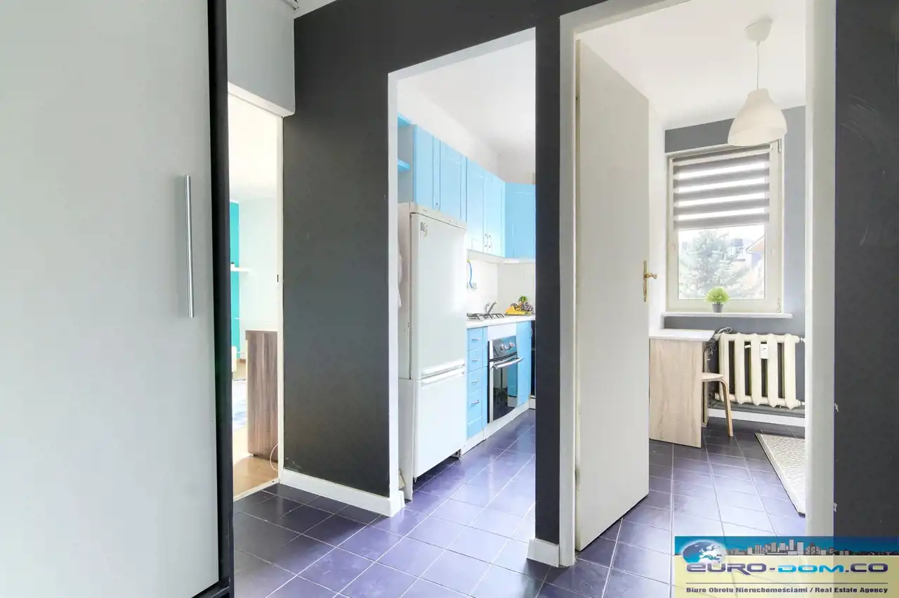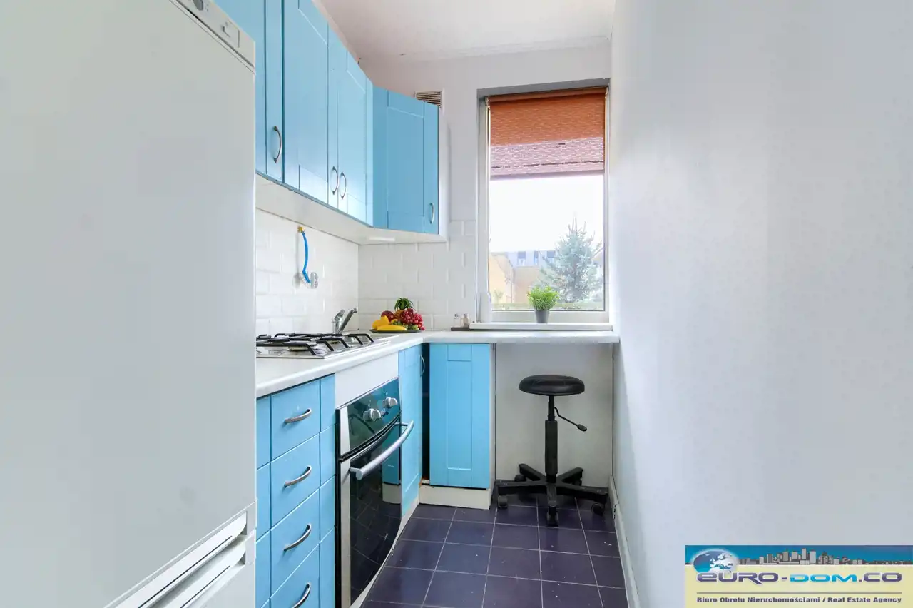 Mieszkanie składa się z pokoju dziennego, kuchni, sypialni, balkonu oraz łazienki. Pokoje są jasne, przestronne i w pełni umeblowane. W sypialni łóżko 160x200. Na wszystkich oknach funkcjonalne rolety dzień-noc. Kuchnia wyposażona jest w niezbędne sprzęty takie jak: gazówka, piekarnik, okap, lodówka. W korytarzu znajduje się szafa na kurtki. Funkcjonalna łazienka z pralką.