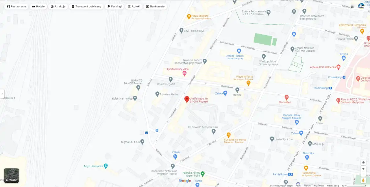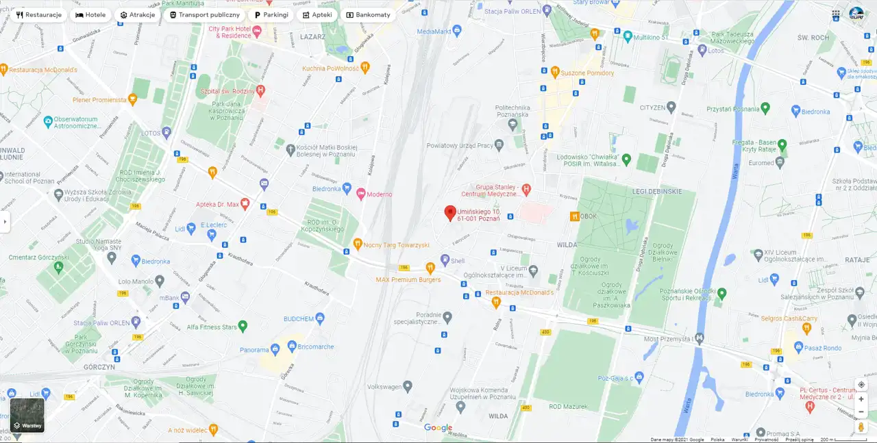 Mieszkanie zlokalizowane jest przy ulicy Umińskiego na Wildzie. Mieszkanie znajduję się w pobliżu GREEN POINT co czyni je bardzo atrakcyjne. Dobre połączenie komunikacją miejską. W okolicy znajdują się sklepy, restauracje, uczelnie.