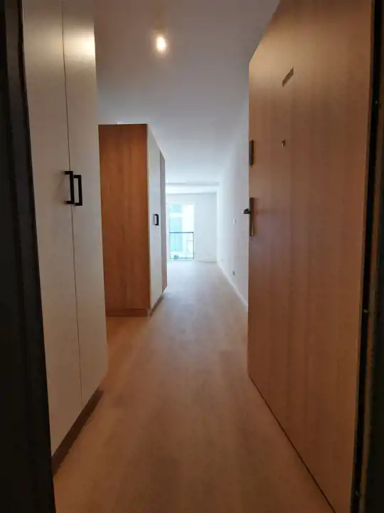Apartament składa się z pokoju z aneksem kuchennym, łazienki i przedpokoju.