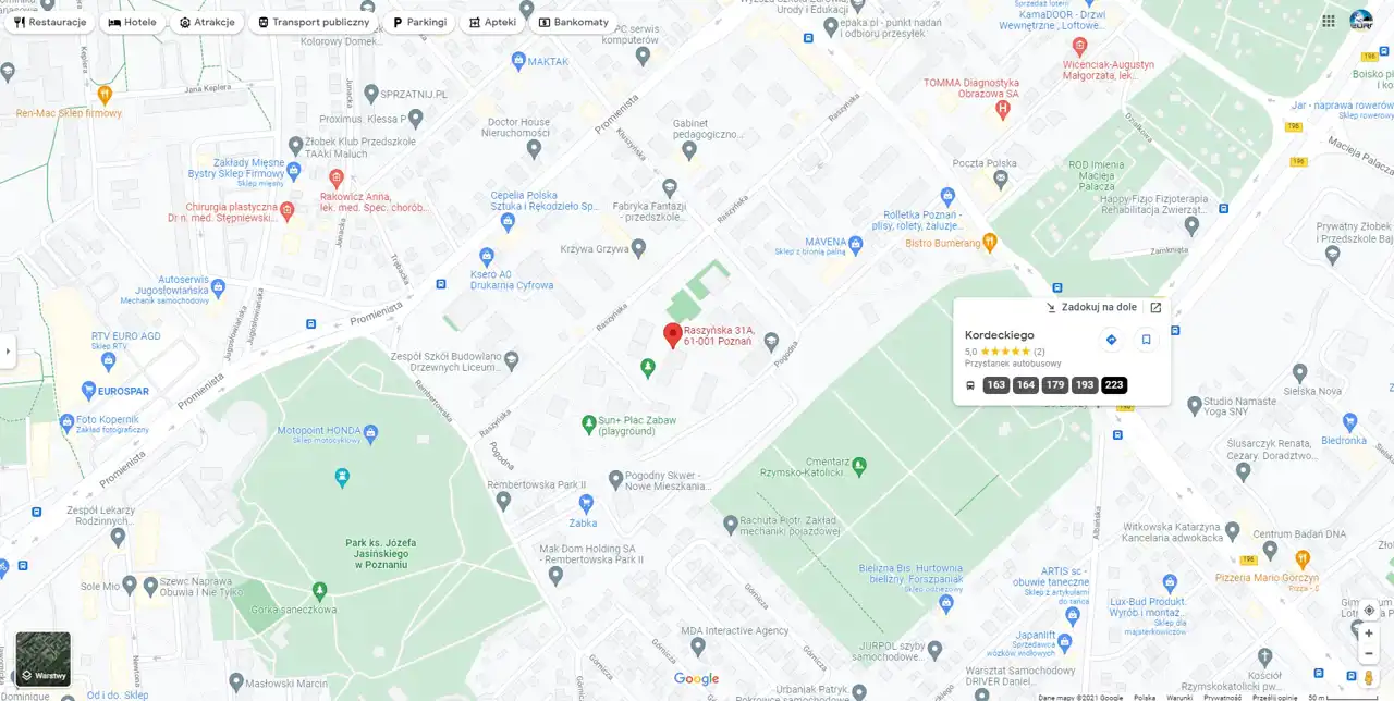 Prezentujemy funkcjonalne i gotowe do wprowadzenia mieszkanie o powierzchni 35 m², położone przy ul. Raszyńskiej 31A w Poznaniu. To idealna propozycja dla osób szukających komfortowego lokum z doskonałym dojazdem do każdej części miasta oraz bezpiecznym miejscem dla samochodu.