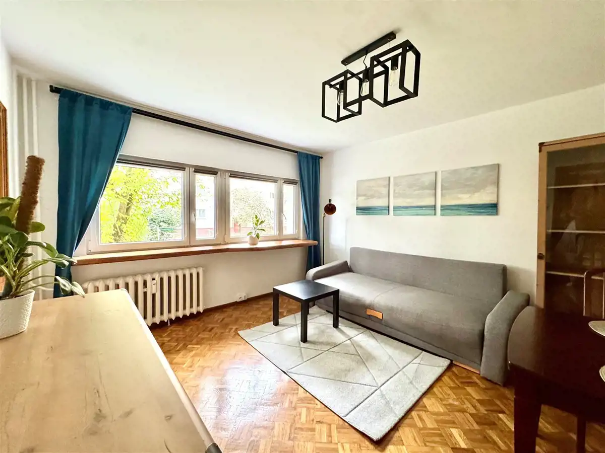 Mieszkanie o powierzchni 37,5 mkw znajduje się na wysokim parterze w 4-piętrowym bloku.