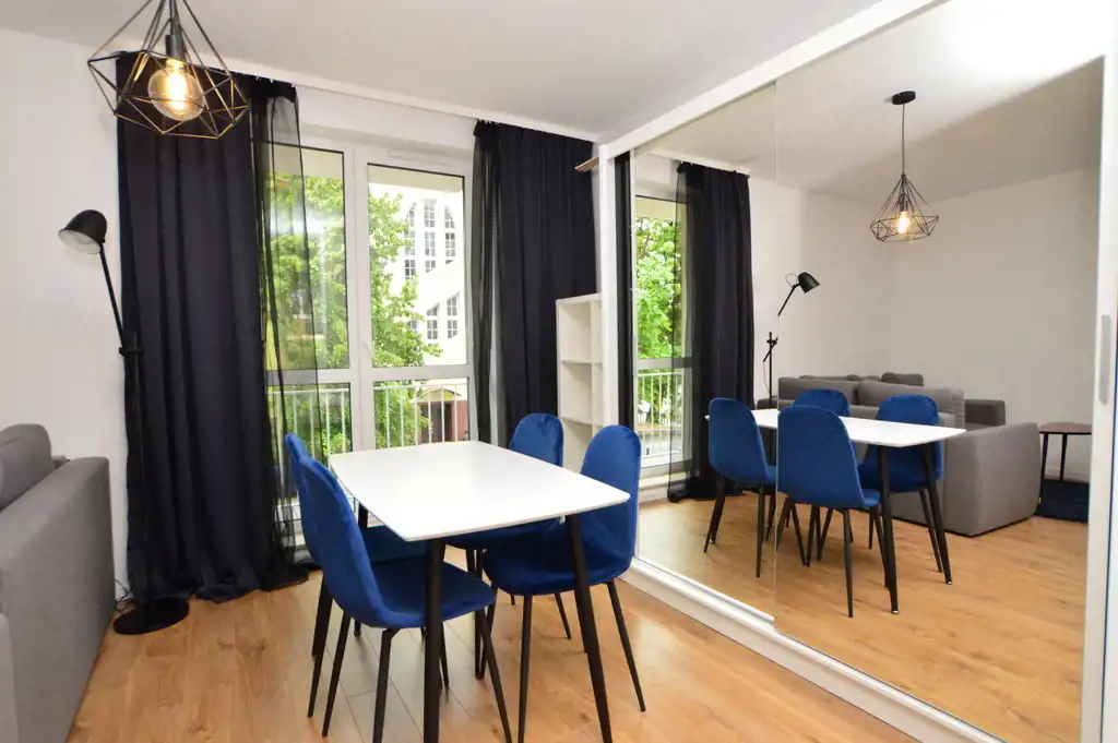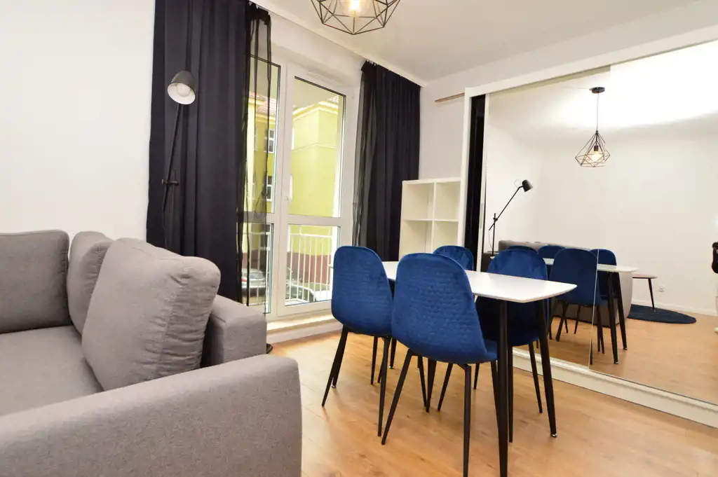 Mieszkanie jest umeblowane i wyposażone w sprzęt AGD.