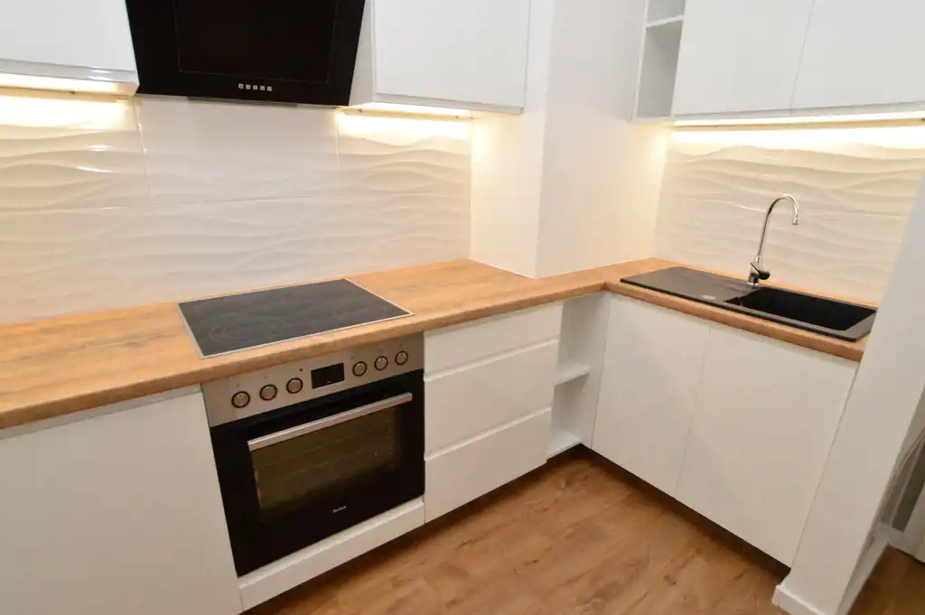 aneks kuchenny: zabudowa kuchenna, płyta grzewcza ceramiczna, piekarnik el., okap kuchenny, lodówko-zamrażarka,