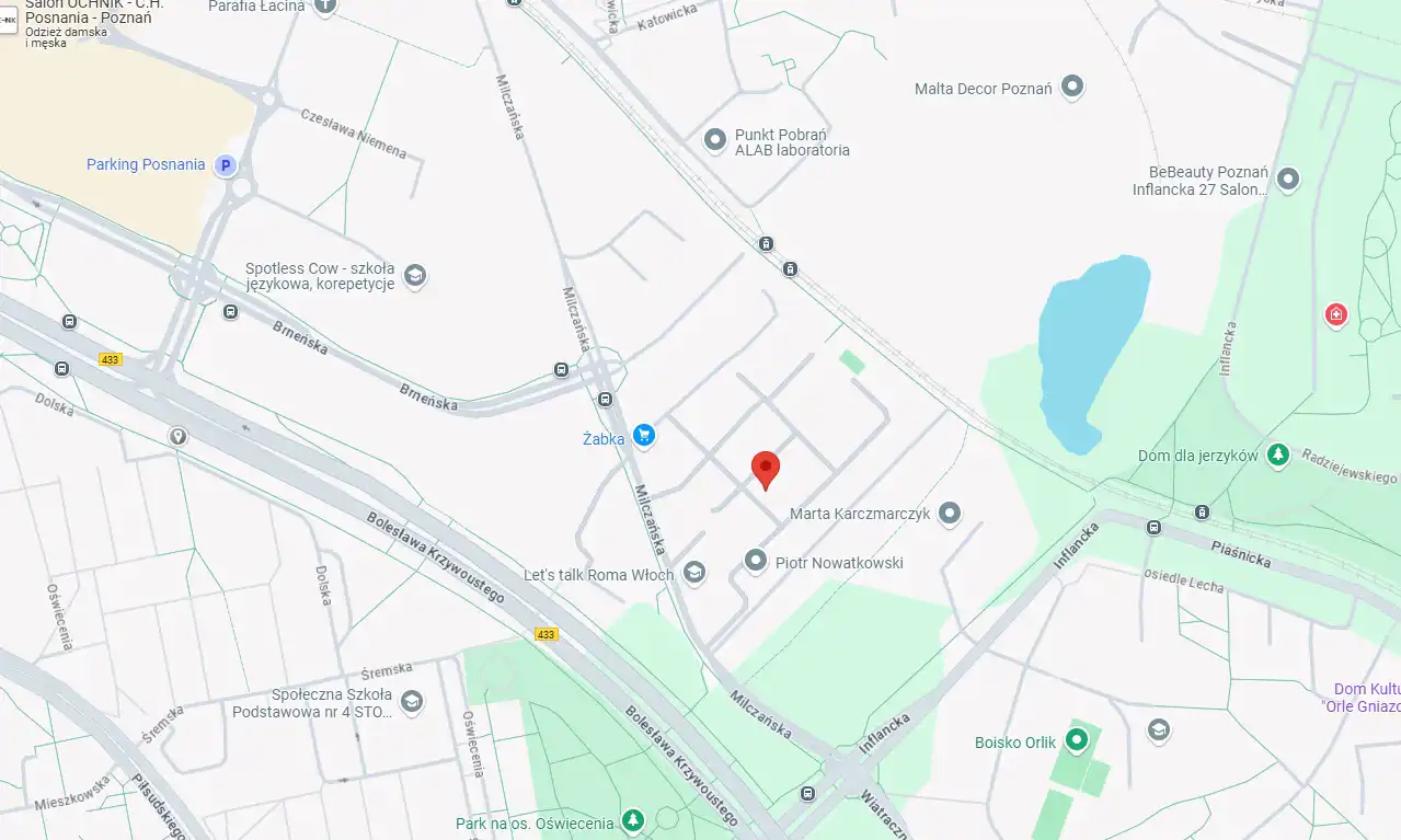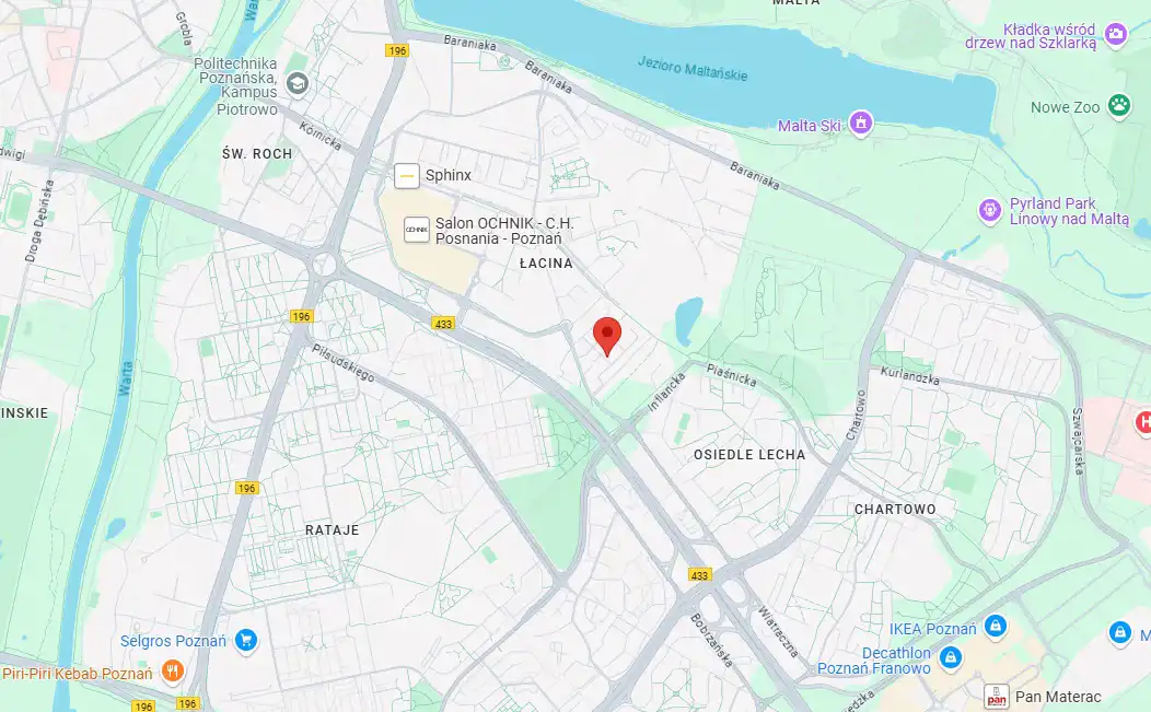 Mieszkanie znajduje się na strzeżonym osiedlu, co gwarantuje bezpieczeństwo i spokój. W pobliżu dostępne są przystanki komunikacji miejskiej – autobusowy „Brneńska” (linie 154, 220) oraz tramwajowy „Łacina” (linie 3, 16, 2, 18) – co zapewnia wygodny dojazd do różnych części miasta. Okolica oferuje wiele możliwości rekreacyjnych i zakupowych. W sąsiedztwie znajduje się Centrum Handlowe Posnania, jezioro Malta, idealne na spacery i aktywność fizyczną, oraz park na osiedlu Oświecenia. Lokalizacja łączy zalety bliskości natury z dostępem do wszystkich udogodnień miejskiego życia.