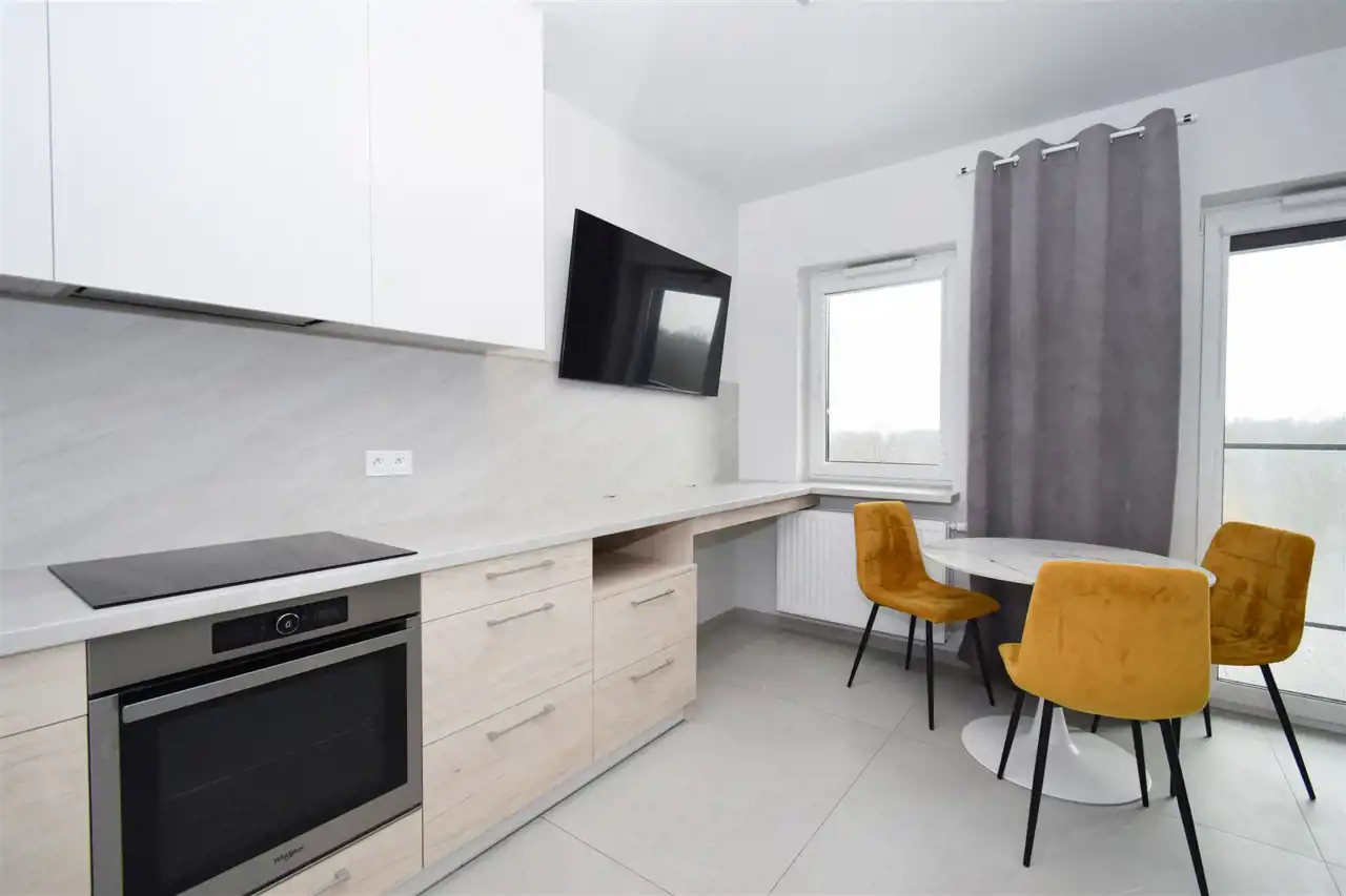 Kawalerka jest nowocześnie wykończona i w pełni umeblowana.