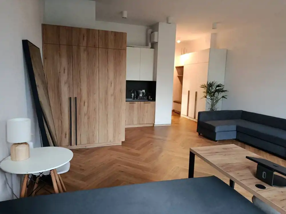 Apartament składa się z przestronnego pokoju z aneksem kuchennym, łazienki i przedpokoju.