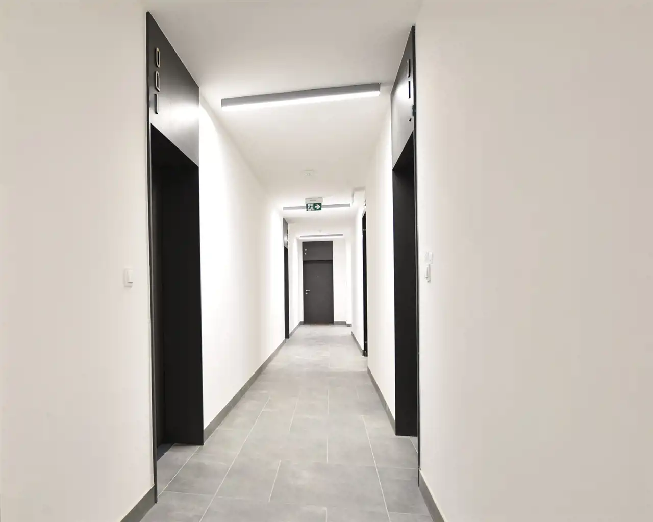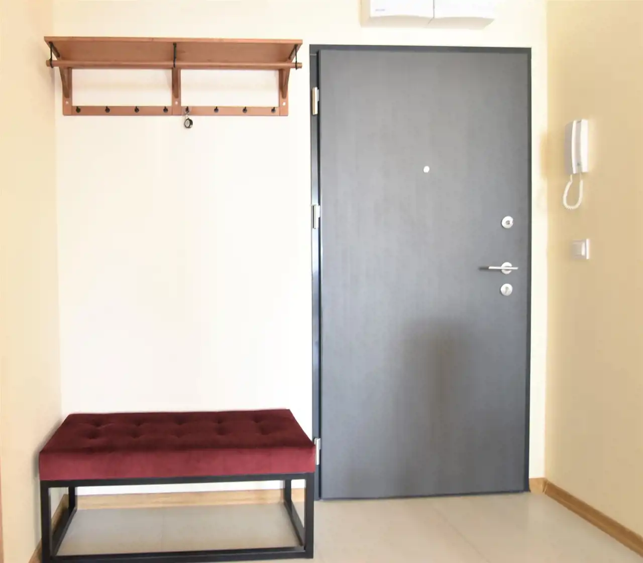 Korytarz wyposażony w miejsce na okrycia wierzchnie.