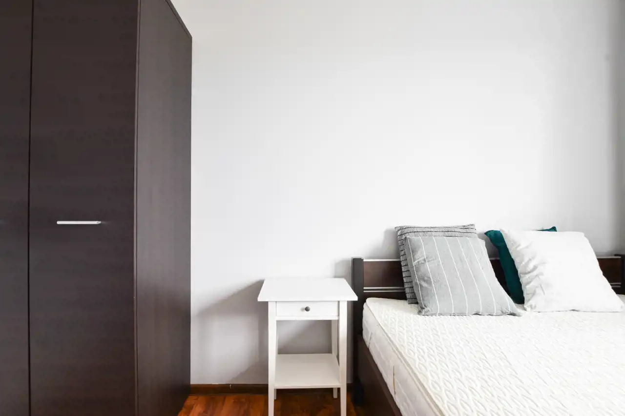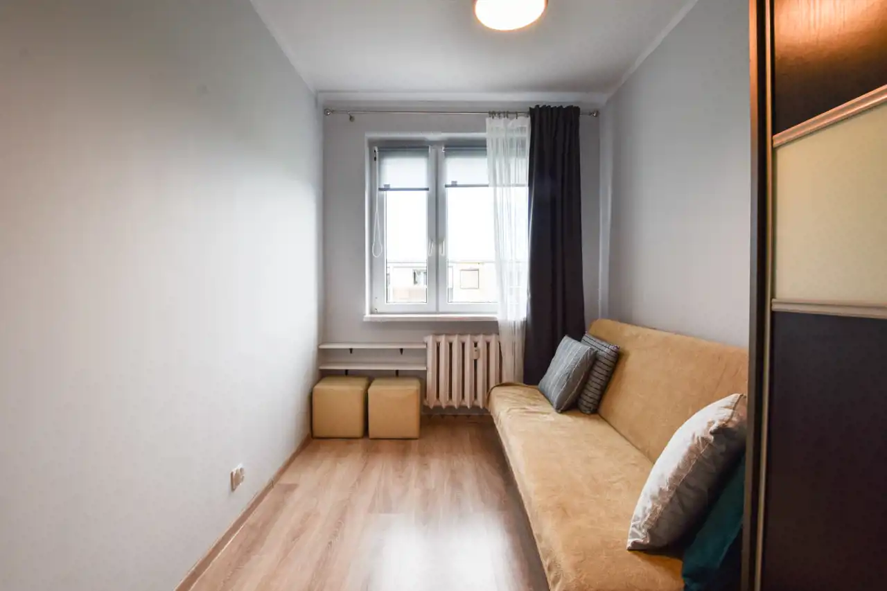 Trzy niezależne sypialnie w pełni umeblowane. Większa sypialnia wyposażona w szafę, duże łózko z materacem, szafkę nocną.