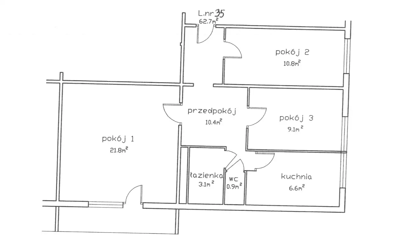 - Charakterystyka mieszkania 62.7 m2, 3 pokoje