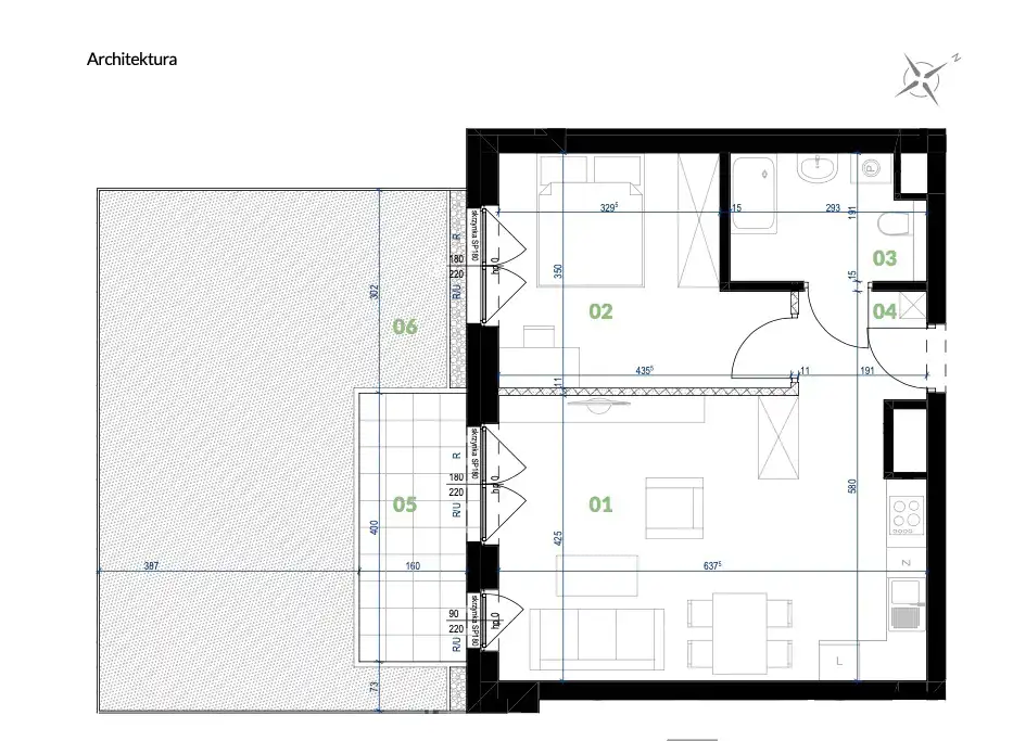 - Charakterystyka mieszkania 47.62 m2, 2 pokoje