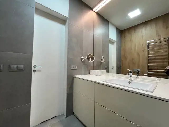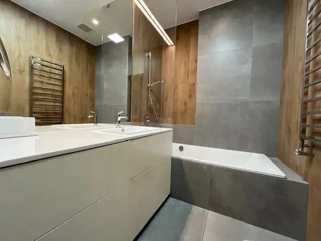 - łazienki z wanną z funkcją prysznica oraz pralko-suszarką, -