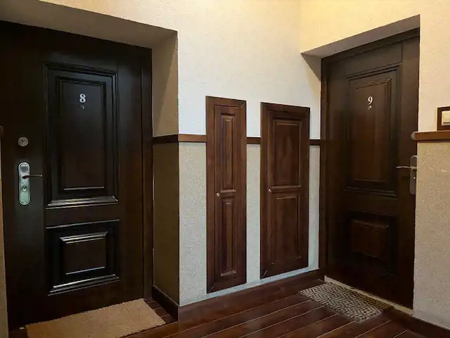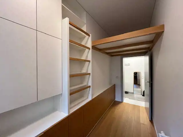 Mieszkanie zostało urządzone z dużą starannością i smakiem — drewniane, dębowe podłogi, wysokie sufity, klimatyczne oświetlenie, funkcjonalna zabudowa na wymiar.