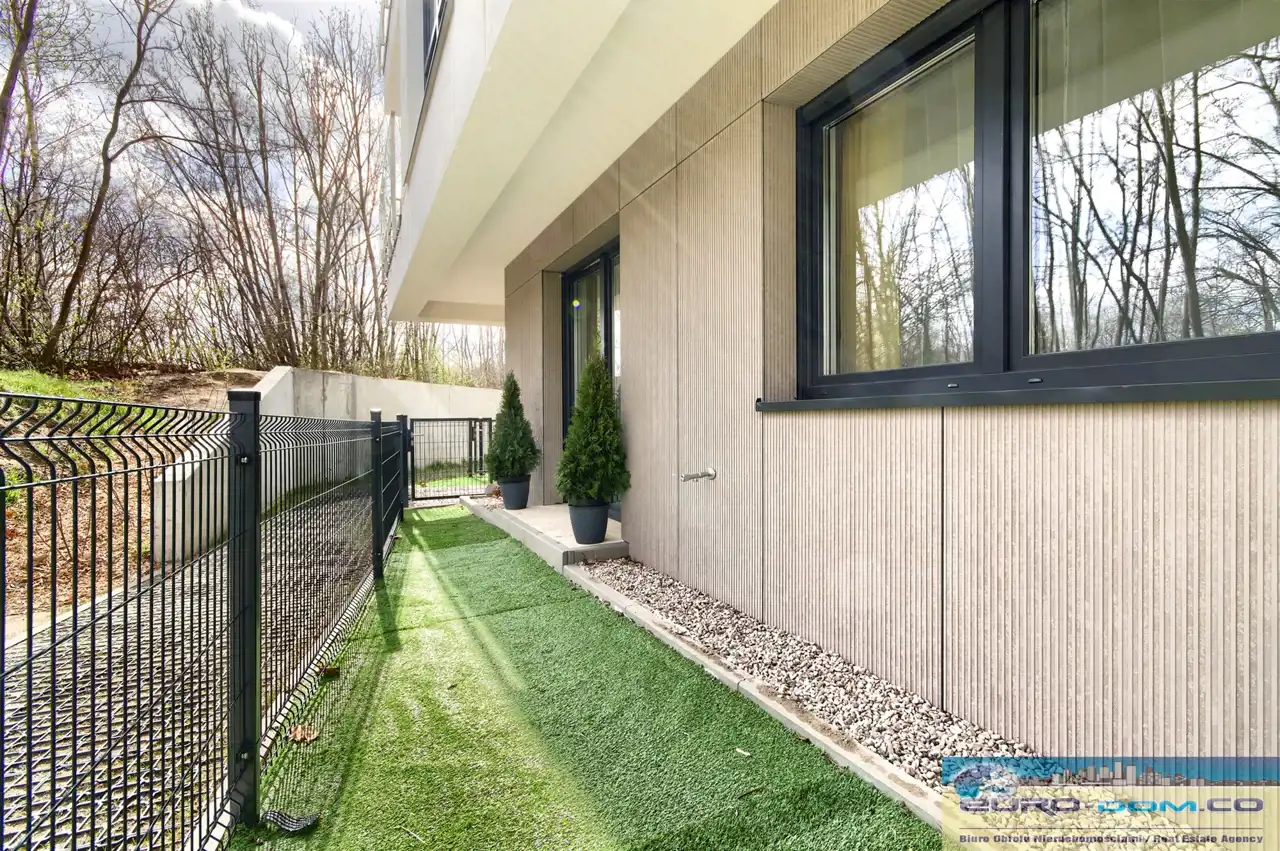 W pełni wyposażona kuchnia (sprzęty AGD zmywarka, płyta indukcyjna, piekarnik, lodówka z zamrażalnikiem) połączona z pokojem dziennym z wygodnym zestawem wypoczynkowym. Całość nowoczesna, estetyczna i komfortowa. Sypialnia z wygodnym łóżkiem 2 osobowym oraz wyjściem na OGRÓD.