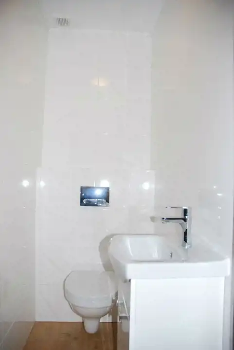 W całym mieszkaniu nowe podłogi, w pokojach i kuchni nowoczesny panel podłogowy wysokiej klasy ścieralności, w korytarzu, łazience i wc nowe płytki podłogowe.