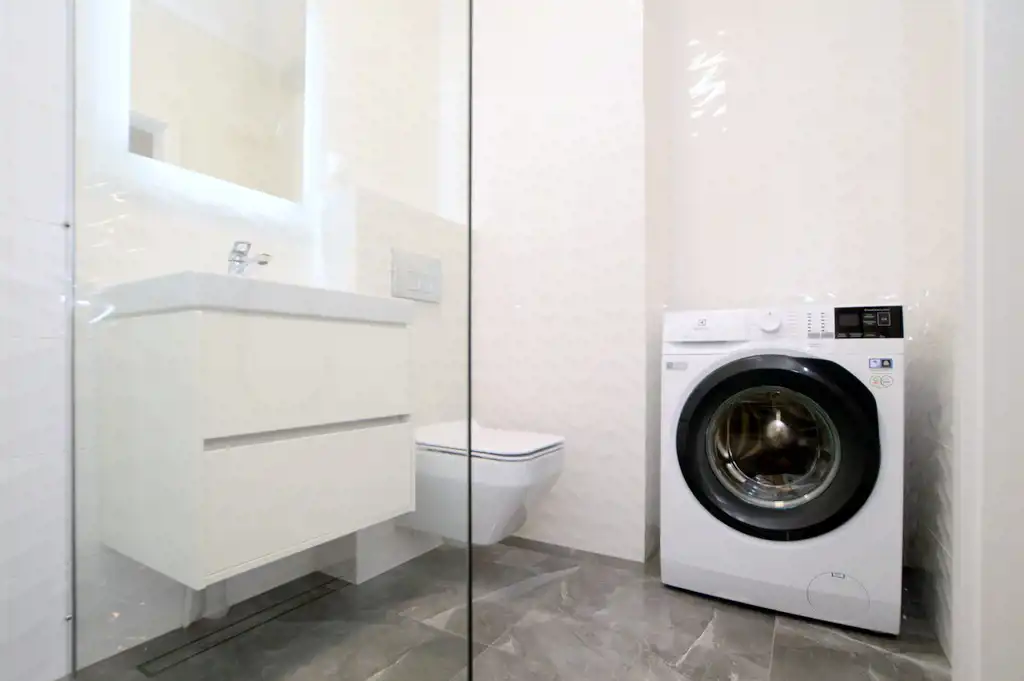 -łazienka z WC 3,95 m2 - prysznic, pralka automatyczna, umywalka