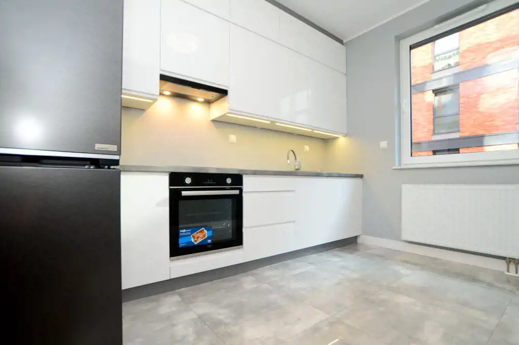 -kuchnia 8,63 m2 - na wyposażeniu m. in. płyta indukcyjna, piekarnik, lodówka, zmywarka, okap