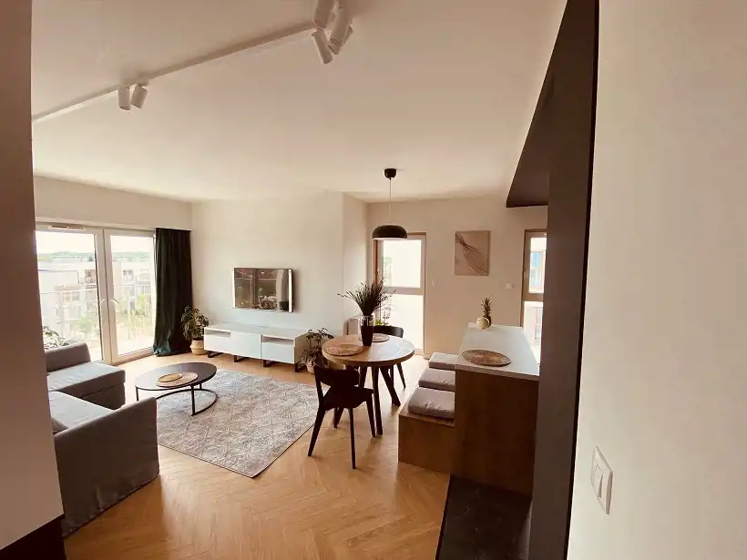 Komfortowe mieszkanie na wynajem na Strzeszynie, przy ul. Olgi Sławskiej - Lipczyńskiej. Lokal znajduje się na trzecim piętrze nowego, trzypiętrowego budynku z windą. Powierzchnia użytkowa 66 m².