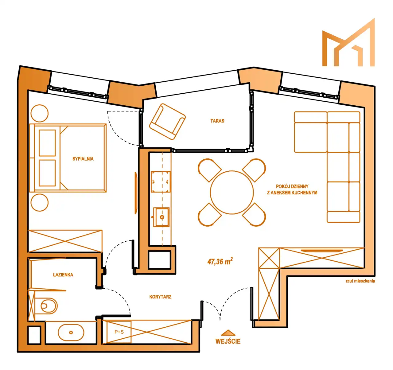 - Charakterystyka mieszkania 47 m2, 2 pokoje