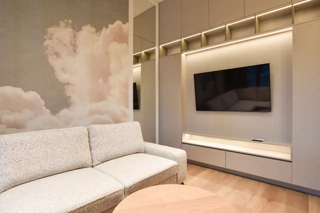 Mieszkanie zupełnie nowe, wykonane według indywidualnego projektu z dbałością o każdy szczegół. Usytuowane od strony Św. Wojciecha, widok z tarasu na osiedlową zieleń. Wysokość pomieszczenia ponad 3 metry.