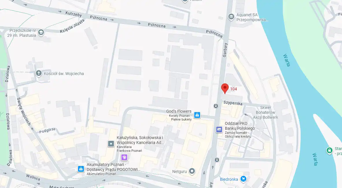 Mieszkanie znajduje się w doskonałej lokalizacji – przy ul. Garbary w Poznaniu. To miejsce łączy w sobie bliskość tętniącego życiem Starego Rynku (zaledwie kilka minut spacerem) z wygodą dostępu do komunikacji miejskiej, sklepów, restauracji i punktów usługowych. W okolicy nie brakuje terenów zielonych – spacer do Parku Cytadela zajmuje tylko kilkanaście minut. Lokalizacja zapewnia szybki dostęp zarówno do centrum miasta, jak i do głównych tras wyjazdowych z Poznania, co czyni ją idealną zarówno dla osób pracujących w centrum, jak i ceniących komfort poruszania się po całym mieście.