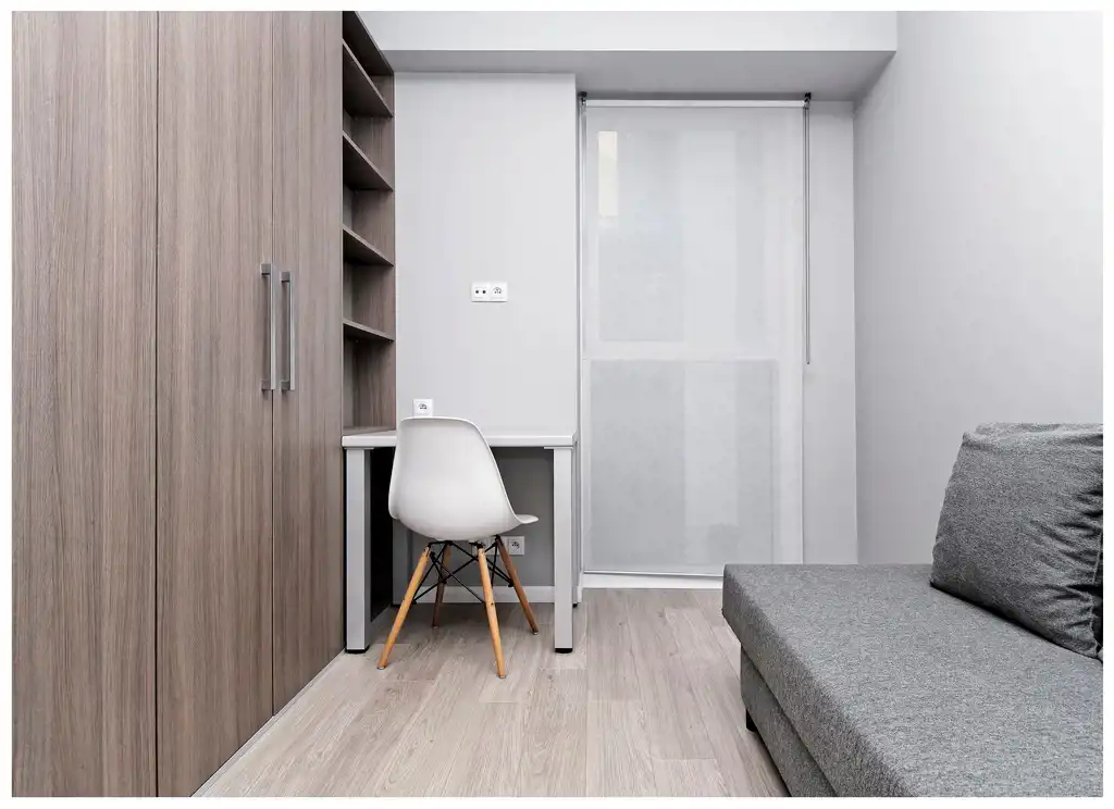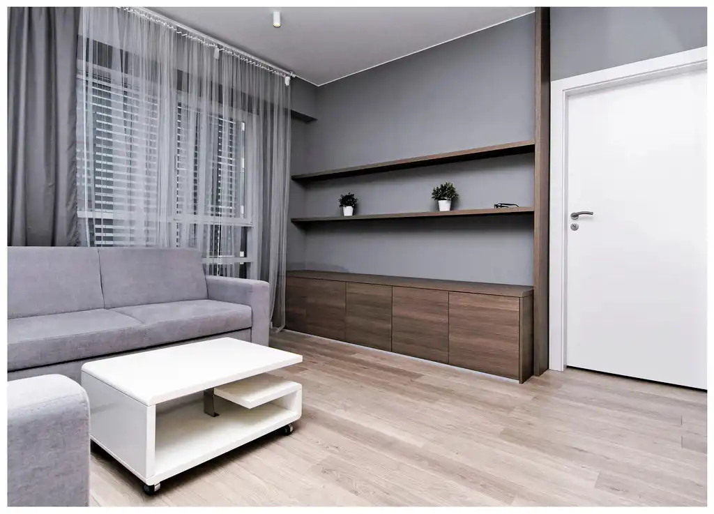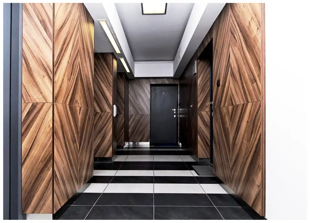- korytarz z szafą w zabudowie, wideodomofonem;