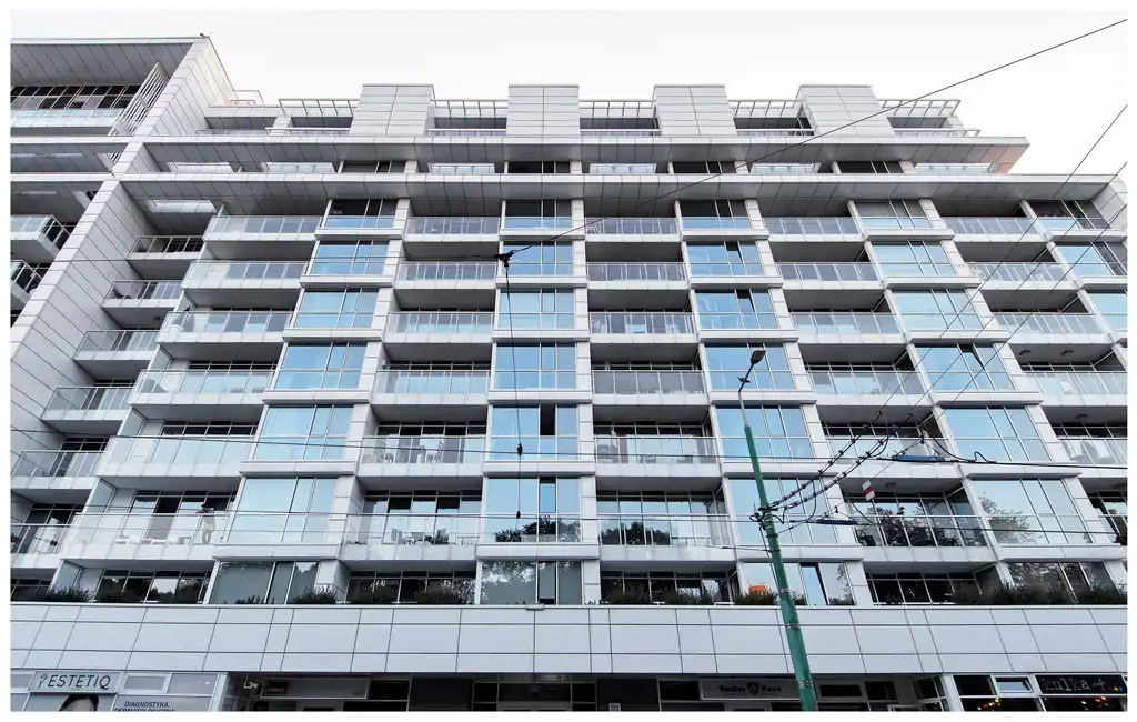 Części wspólne z monitoringiem, budynek posiada hol z recepcją oraz podziemną halę garażową. Wszystkie poziomy obsługiwane są windą. Na parterze znajdują się ogólnodostępne punkty handlowe i usługowe oraz siłownia, przeznaczona tylko dla mieszkańców budynku.