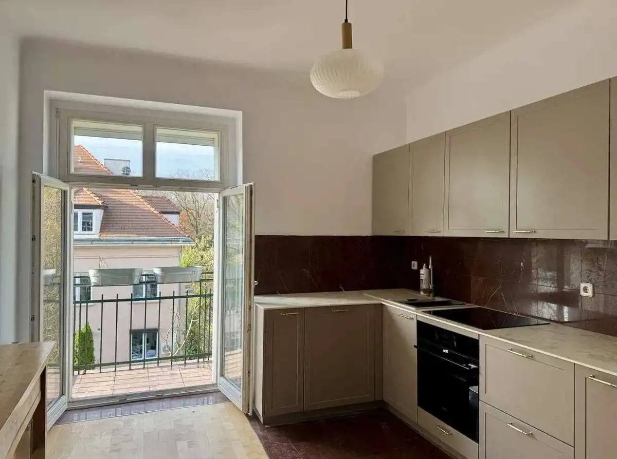 • Oddzielna kuchnia z balkonem – nowa, w pełni wyposażona, z malowniczym widokiem na ogród