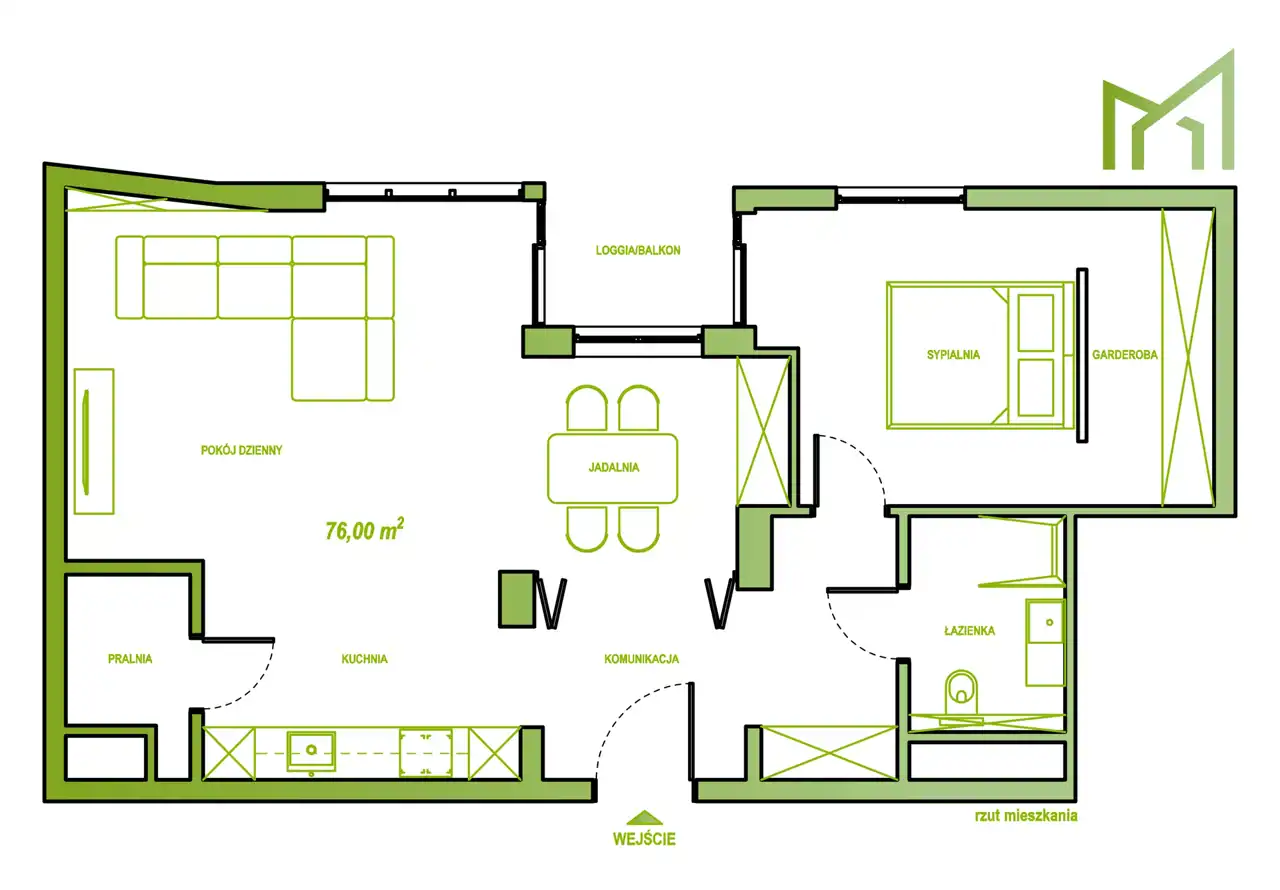 - Charakterystyka mieszkania 76 m2, 2 pokoje
